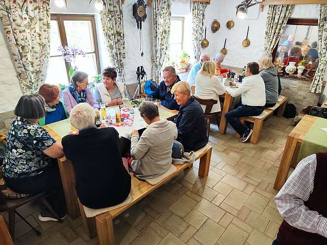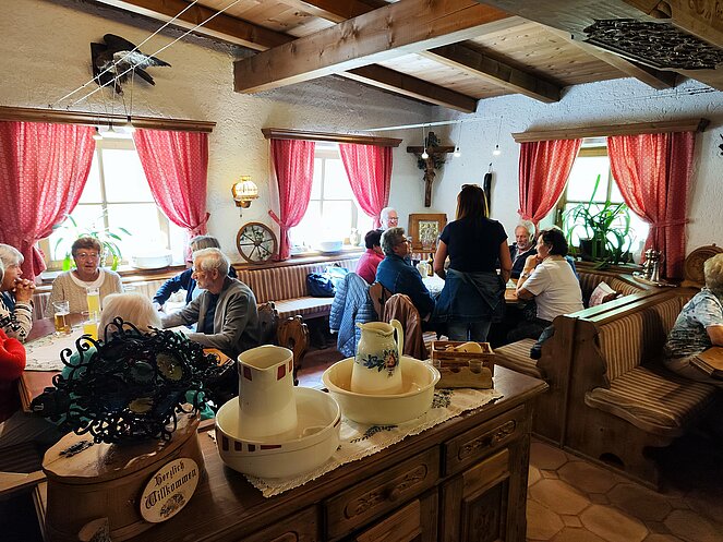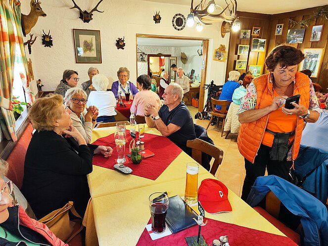 Der Muttertagsausflug der Ortsgruppe Grödig führte die 94 Mitglieder bei strahlendem Sonnenschein vorbei am Wolfgangsee hinauf zum bezaubernden Schwarzensee. Nach einem Spaziergang besuchten wir die Schmankerlwirtin LORE. Wobei so mancher auf sein verdientes Essen lange warten musste, aber verhungert ist dann doch keiner. Die Wartezeit verkürzte uns der Musiker Willi mit seiner Harmonika.