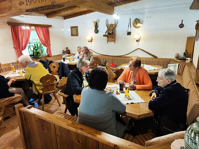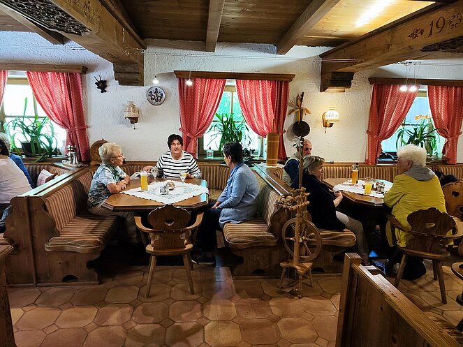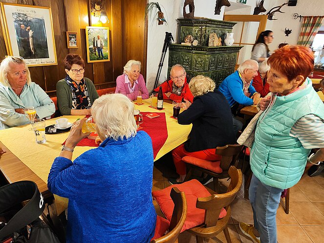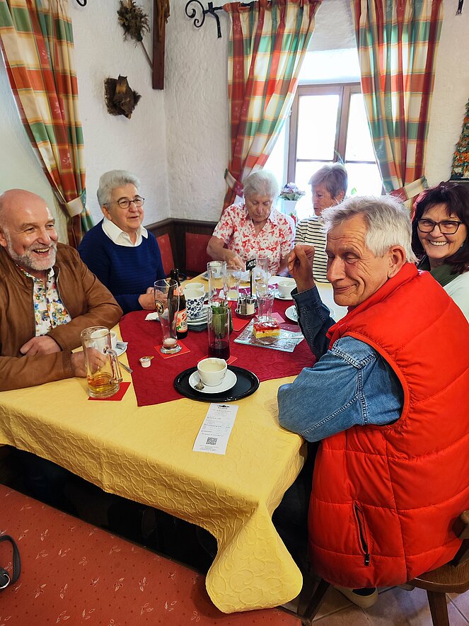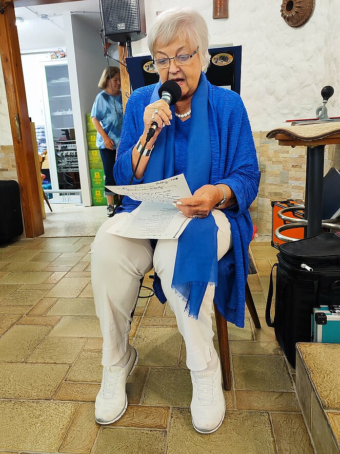 Bei Kaffee und Kuchen trug unsere Karin Stockinger in bewährter Manier ihre selbstverfassten Geschichten und Gedichte zum Muttertag vor.