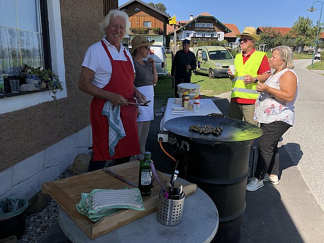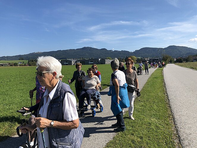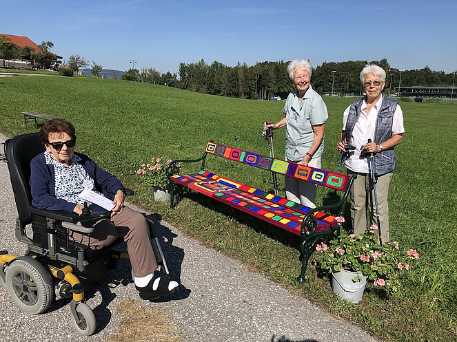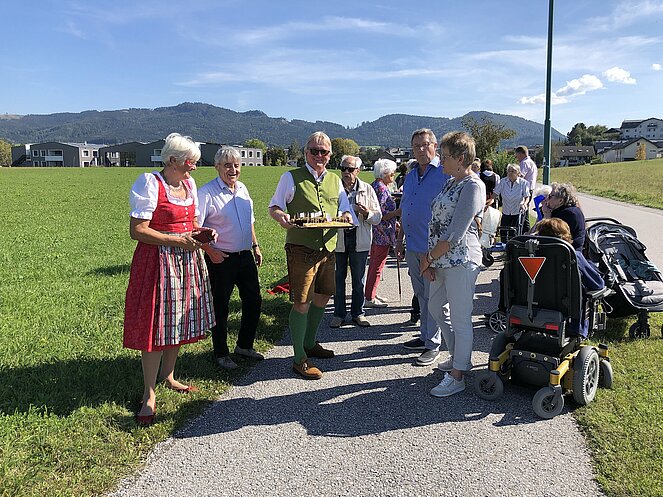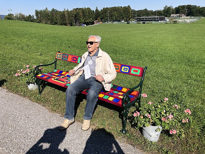 Da wir heuer 70 Jahre PV Ortsgruppe Henndorf, 75 Jahre PVÖ feiern, schien uns dies der geeignete Anlass, mit unseren Pensionisten und Pensionistinnen eine solche Veranstaltung nachzumachen; allerdings ohne sportlichen Anspruch, unter dem Motto „ Dabei sein ist alles“. Auch einige Bewohner und Bewohnerinnen unseres Seniorenwohnhauses haben mitgemacht. Die ältesten Teilnehmer waren 94 und 96 Jahre. Entlang des Weges haben wir das RentnerRuheBankerl eingeweiht. Eine Gruppe unserer Pensionistinnen hat diese Bank in mehreren Arbeitsschritten bemalt. Das Ergebnis hat viel Beifall gefunden und erinnert an Hundertwasser Werke. Bei bestem Wetter und viel guter Laune, mit einigen Labstellen auf dem Weg, war dies eine wirklich gelungene Veranstaltung. Gutes Essen und Musik gehörten auch dazu.