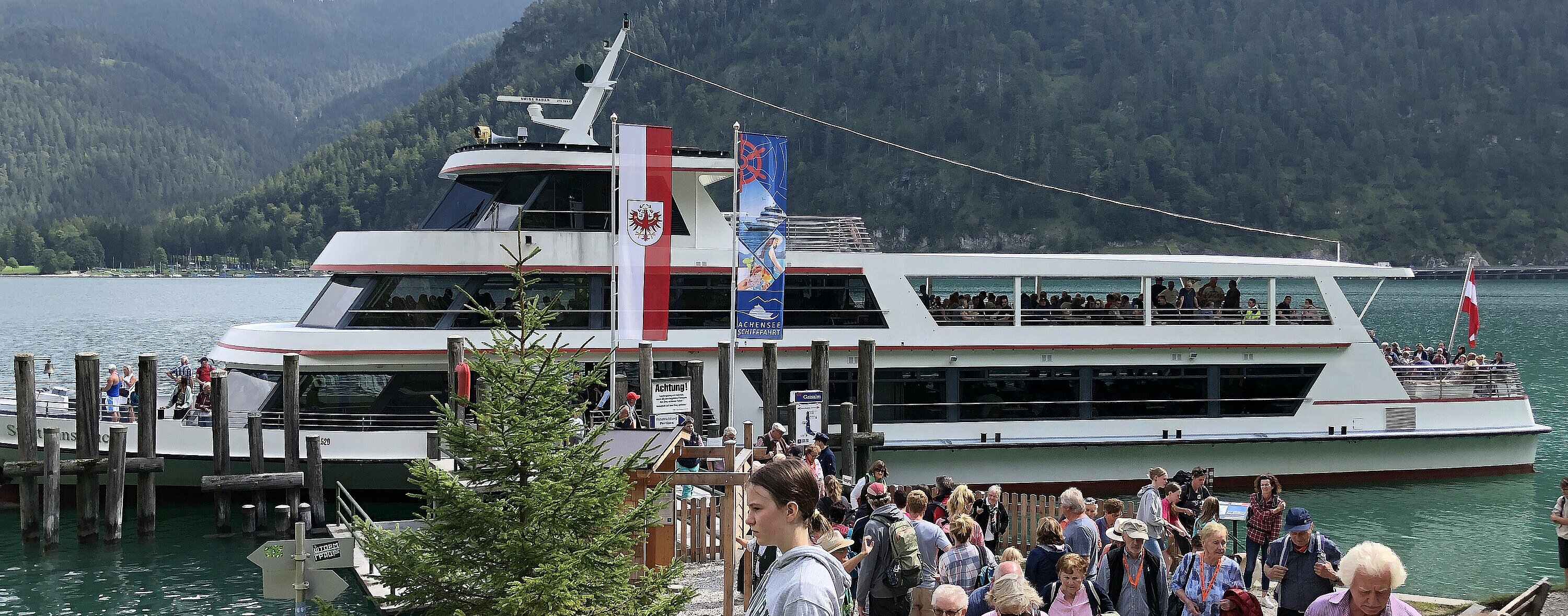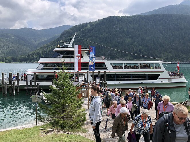 Auch einige Gäste sind mitgefahren. Und wie üblich hatten wir musikalische Begleitung. Zuerst machten wir uns im Tiroler Steinöl Museum in Pertisau kundig. Von hier ging es mit dem Schiff zur Gaisalm zum Mittagessen. Am Rückweg wanderte ein Teil der Gruppe am Achensee entlang und die anderen fuhren mit dem Schiff zurück. Nach einer weiteren Einkehr sind wir wieder heimgefahren. Der Ausflug war für alle vergnüglich, es gab gutes Essen, sowie Ziehharmonika- und Gitarrenmusik zum Mitsingen.