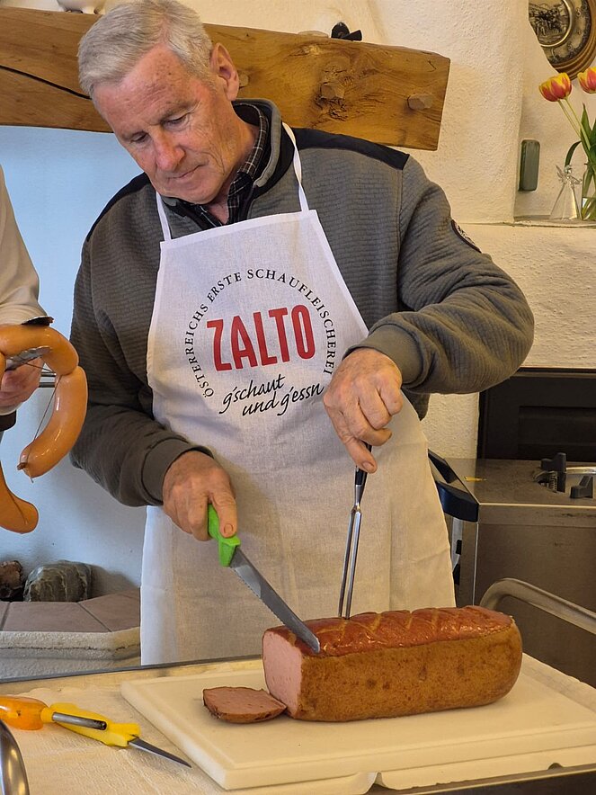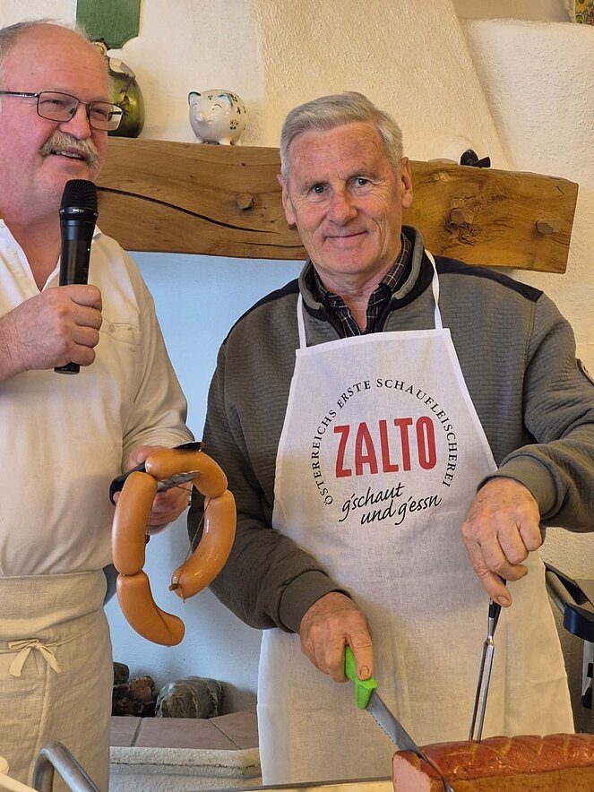 Zuerst ging`s nach Kirchberg ob der Donau zur Schaufleischerei Zalto – der Chef selber machte eine unglaublich interessante und lustige Vorstellung seines Vorzeigebetriebes und zum grandiosen Abschluss gab es aus dem Kessel frische Frankfurter, Debreziner, Burenwürste, Käsekrainer, Braunschweiger, Knacker und vieles mehr – jeder konnte essen so viel er wollte und ich sage dir – es schmeckte hervorragend!