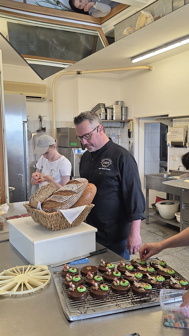 Danach fuhren wir weiter nach Pfarrkirchen im Mühlkreis und besuchten die Schaukonditorei Bauer – auch hier machte das Eigentümer Ehepaar eine äußerst interessante Show – wir konnten die Herstellung von Torten, Ischler oder Ostergebäck live erleben, danach bekam noch jeder ein Heißgetränk (Kakao, Kaffee oder Tee) sowie ein Stück Kuchen seiner Wahl (waren allesamt lecker) – die Zeit bis zur Rückfahrt nützten viele von uns zu einem Beuch in der Ortskirche oder wanderten zu einer Plattform mit 360 Grad Rundumblick in das schöne Mühlviertel.