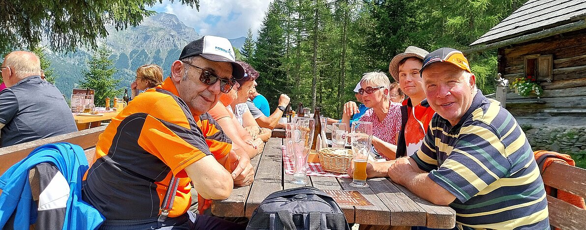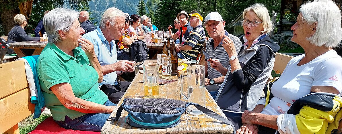 Die Wandergruppe wurde von den Bauersleuten Claudia u. Ernst Bliem freundlich empfangen und sehr gut bewirtet. Das Angebot war reichlich und erfüllte die Erwartung der rüstigen aber hungrigen Pensionisten voll.