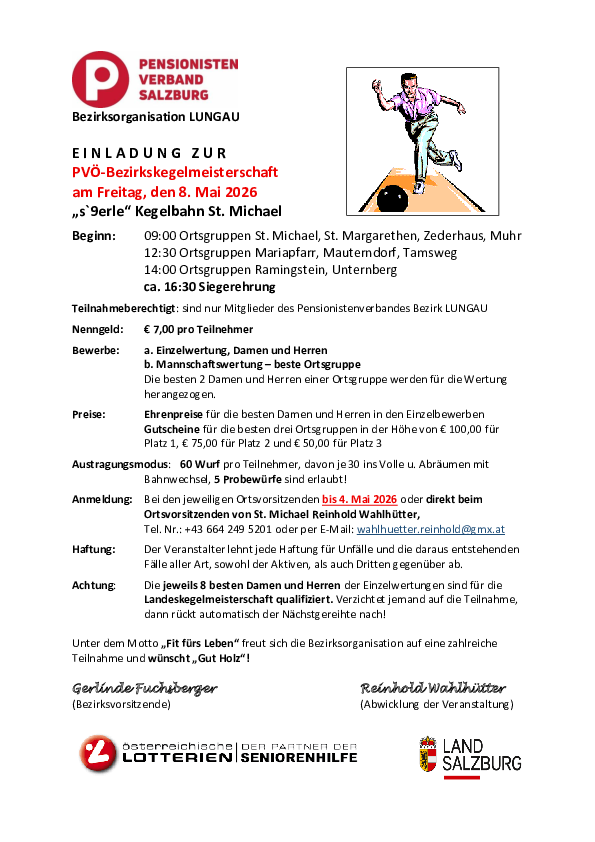 Teilnahme: Berechtigt sind nur Mitglieder des Pensionistenverbandes Bezirk LUNGAU