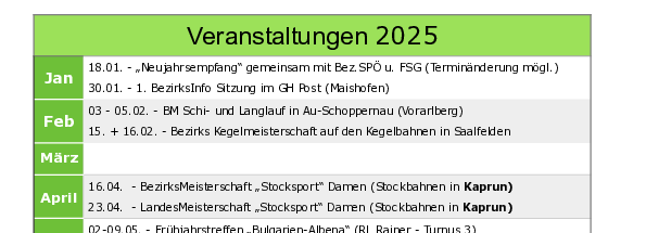 Vorläufige Termine - Änderungen vorbehalten