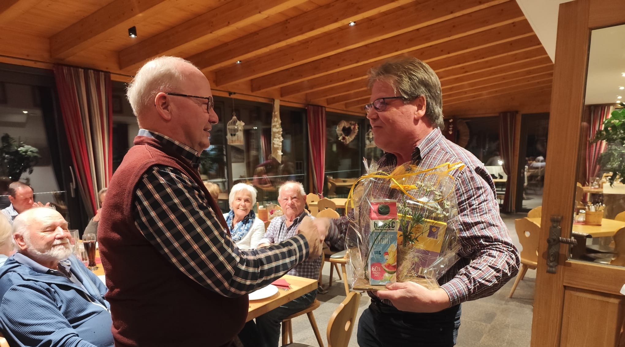Am 13. November 2025 hatten wir das Wanderabschlussessen beim Gasthof Unteraigen, bei dem unser Ortsvorsitzender Walter Göd unserem Wanderführer Toni Grundner mit einer kleinen Aufmerksamkeit danken konnte.