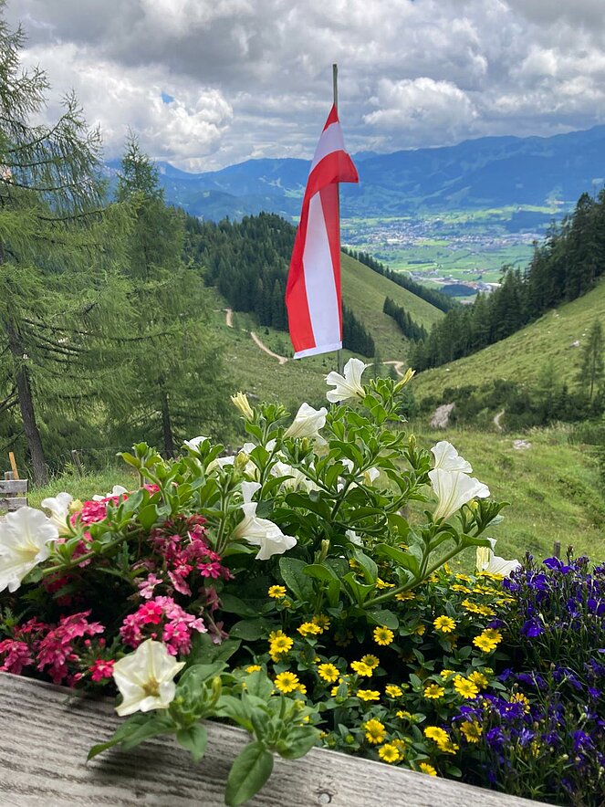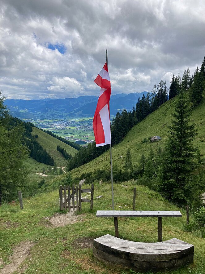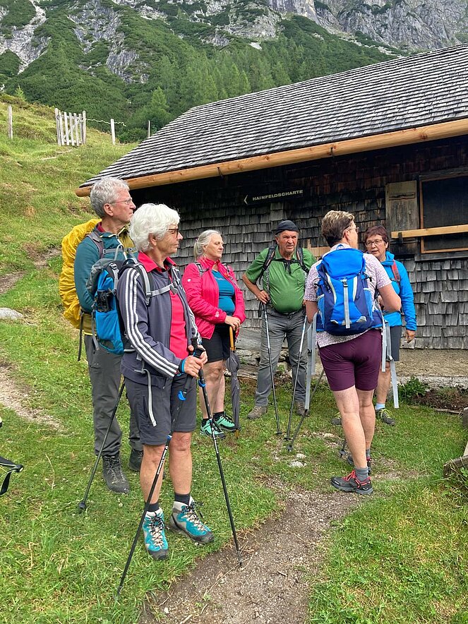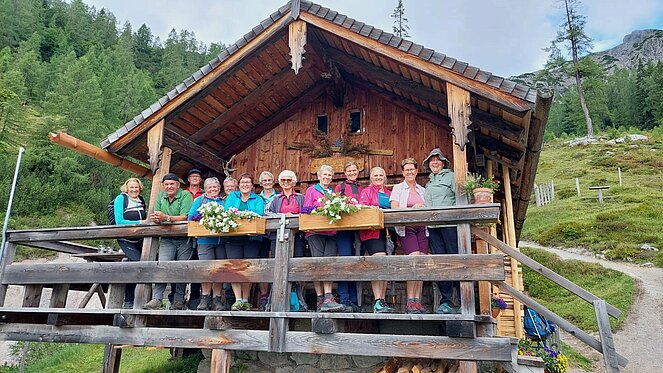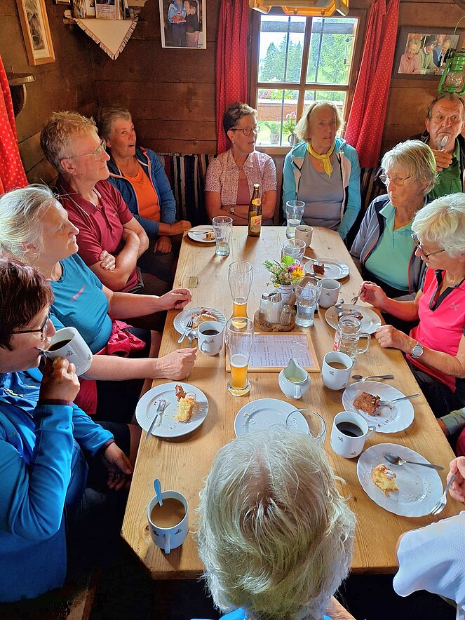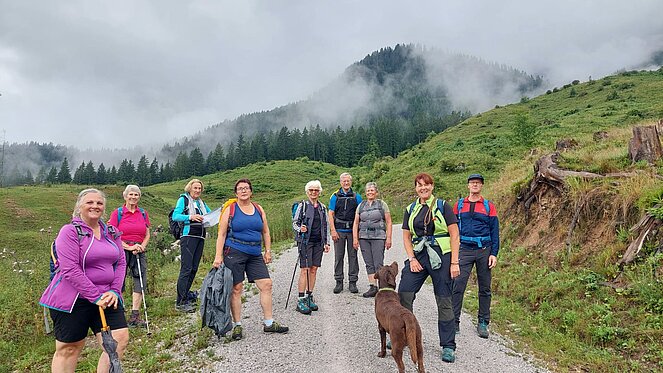 Als umweltfreundliches Transportmittel für die sportliche Gruppe wählten die Organisatorinnen den Loigom Shuttle. Dem Wetter zum Trotz starteten unsere PensionistInnen bei Regen zum Lettlkaser. Sie wurden belohnt, denn bald hörte der Regen auf und es bot sich freie Sicht ins Tal. Eine lustige Runde freute sich am Kaser über die gemeinsame Tour.