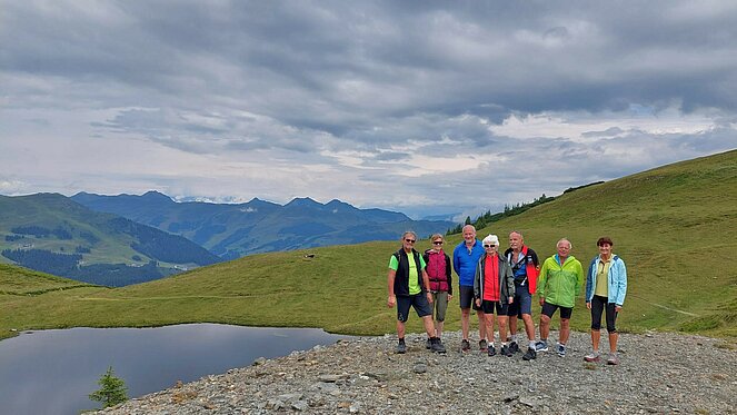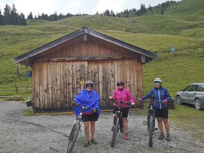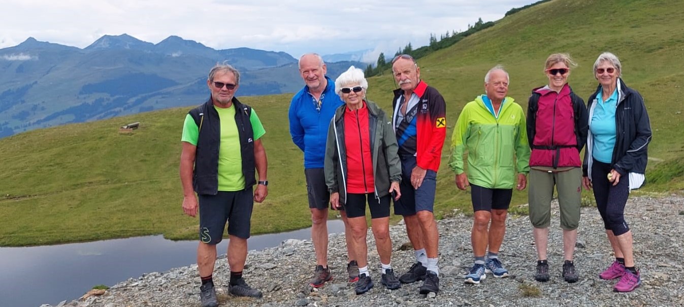 Bei unserer 3. Radausfahrt lernten wir mal die Berge unseres Nachbarn Saalbach/Hinterglemm kennen. Das Wetter war nicht so gut einzuschätzen, aber wir wagten es trotzdem. Trocken kamen 14 RadlerInnen bei der Hacklberger Alm an und 8 TeilnehmerInnen wanderten noch zu den Hacklberger Seen. Und der Regen hat uns dann doch noch bei der Abfahrt ins Tal erwischt. Alles in allem ein schönes Erlebnis, das wir nicht missen möchten.