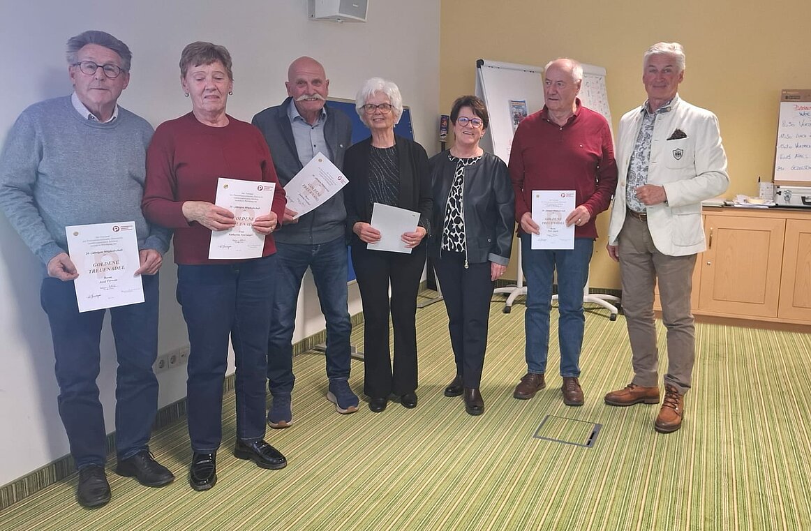 Obfrau Helga Hammerschmied-Rathgeb konnte gemeinsam mit Bezirksobmann Christian Hausberger verdiente Mitglieder auszeichnen. 10 Mitglieder wurden mit der Goldenen Treuenadel für 20, 25, 30, 35 und 40 Jahre Treue zum Pensionistenverband in einem stimmungsvollen Rahmen ausgezeichnet.
