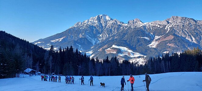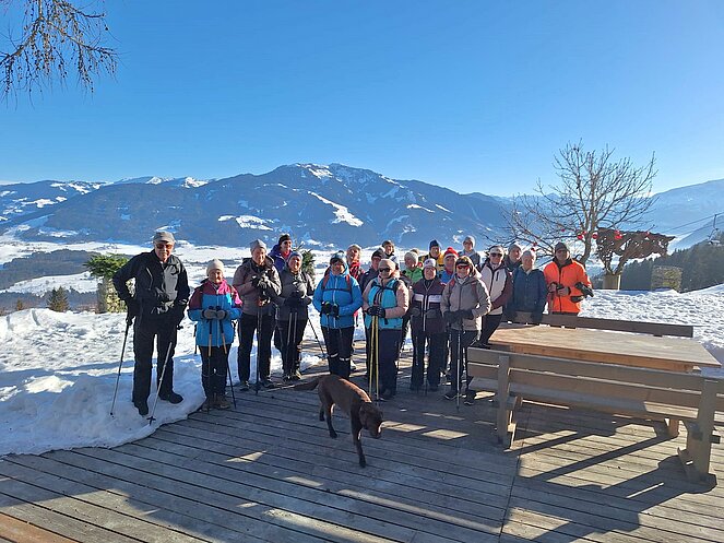 Am 24. Januar 2026 unternahm eine Gruppe von 21 sportlichen Pensionistinnen und Pensionisten der Ortsgruppe Leogang eine Winterwanderung zum Berggasthof Huggenberg in Saalfelden.