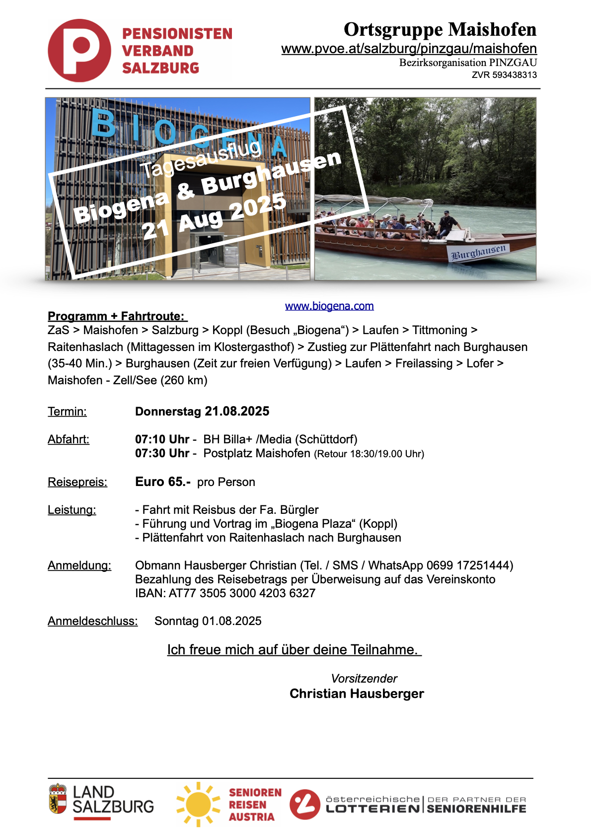 Kontakt: Christian Hausberger, Tel. 0699 17251444 (SMS + WhatsApp)