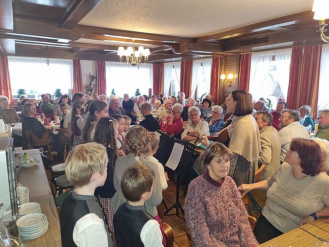 Ein herzliches Dankeschön an Eva Wimmer mit Kinderchor für die gelungenen Lied.-und Musikvorträge, und den Wirtsleuten Kröll für die hervorragende Bewirtung.