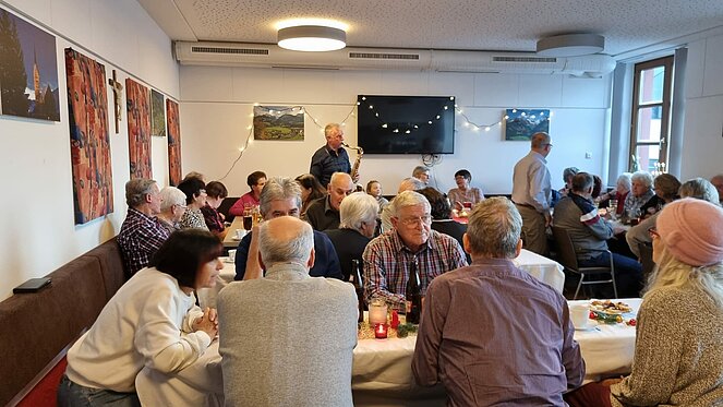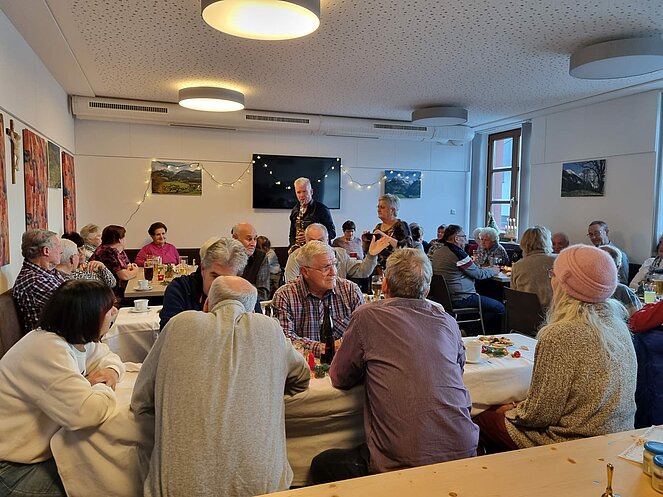 Unser Obmann Toni Streitberger konnte wieder im vollen Stüberl über 40 Teilnehmer:innen und den Saxophonisten Werner mit seiner Enkelin auf der Ziehharmonika begrüßen und alle auf Würstl und Getränke für eine freiwillige Spende einladen. Die beiden unterhielten uns bei einer netten, besinnlichen und lustigen Weihnachtsfeier sehr gut. Die Stüberlbetreuerinnen steuerten wieder ihre selbst gebackenen Kekse bei.
