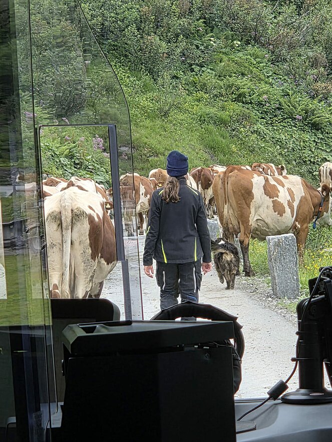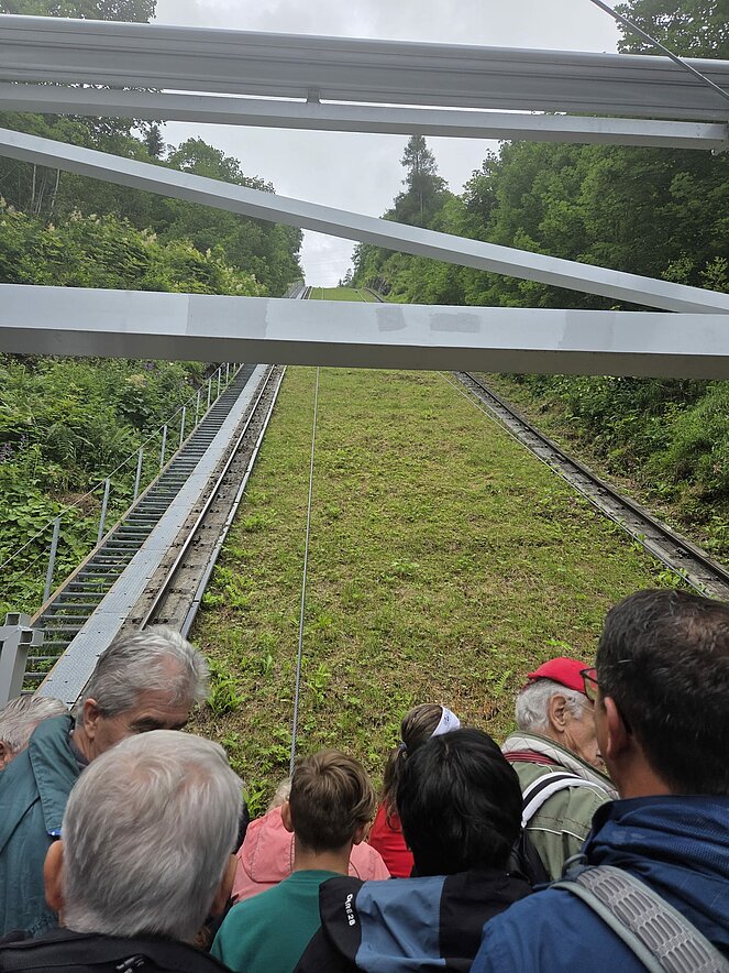 Anschließend erfolgte die Auffahrt zum Parkplatz Kesselfall, dem Zugangspunkt zur Hochgebirgswelt von Kaprun. Von dort ging es mit einem Bus weiter zum Schrägaufzug, der die Besucher spektakulär durch den Berg transportierte. Oben angekommen, brachte ein weiterer Bus die Gruppe zum Mooserboden-Stausee, der auf über 2.000 Metern Höhe liegt.