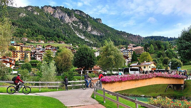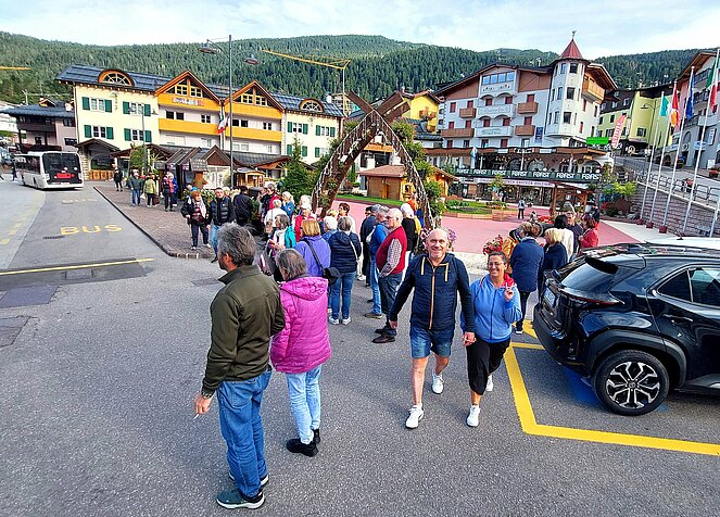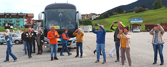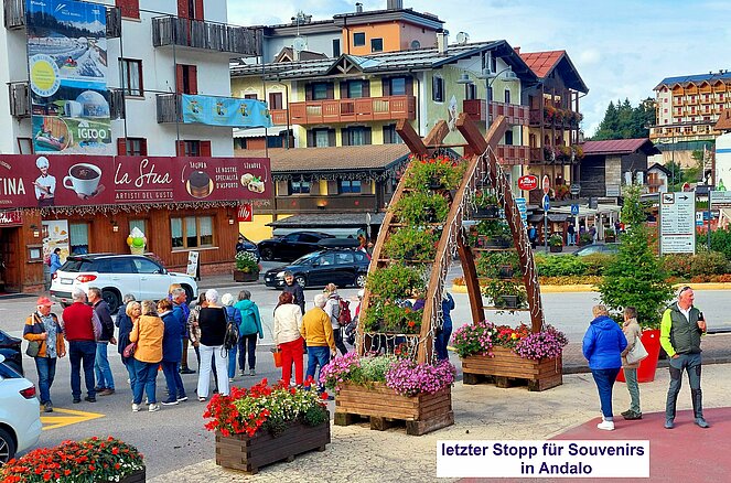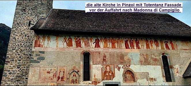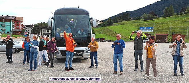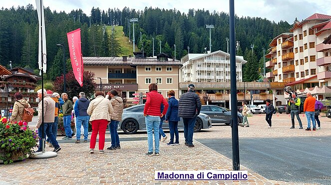 Am 3. Tag hatte der kalte Nordwind die Luft getrocknet und so hatten wir tolle Ausblicke in die umgebende Bergwelt. Die Fahrt ging rund um die „Brenta Dolomiten“, mit einigen Zwischenstopps, zuerst nach Madonna di Campiglio, auf dem Passo Campo mit fast 1700m. Allen war dieser Ort von den Weltcup Schirennen bekannt. Trotz der unzähligen Hotelanlagen ist die umgebende Berglandschaft schon sehr beeindruckend. Durch das „Val di Sole“ und das „Nonstal“ fuhren wir nach einem langen Tag wieder zurück zum Hotel. Auch diese Landschaft mit dem breiten Talboden, zum Großteil mit Obstplantagen bewirtschaftet, und den verstreuten Ortschaften und vielen Burgen hat uns sehr beeindruckt.