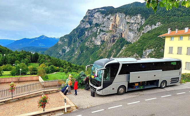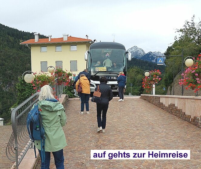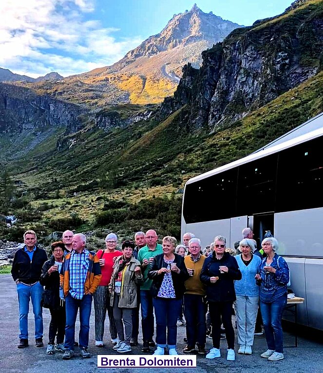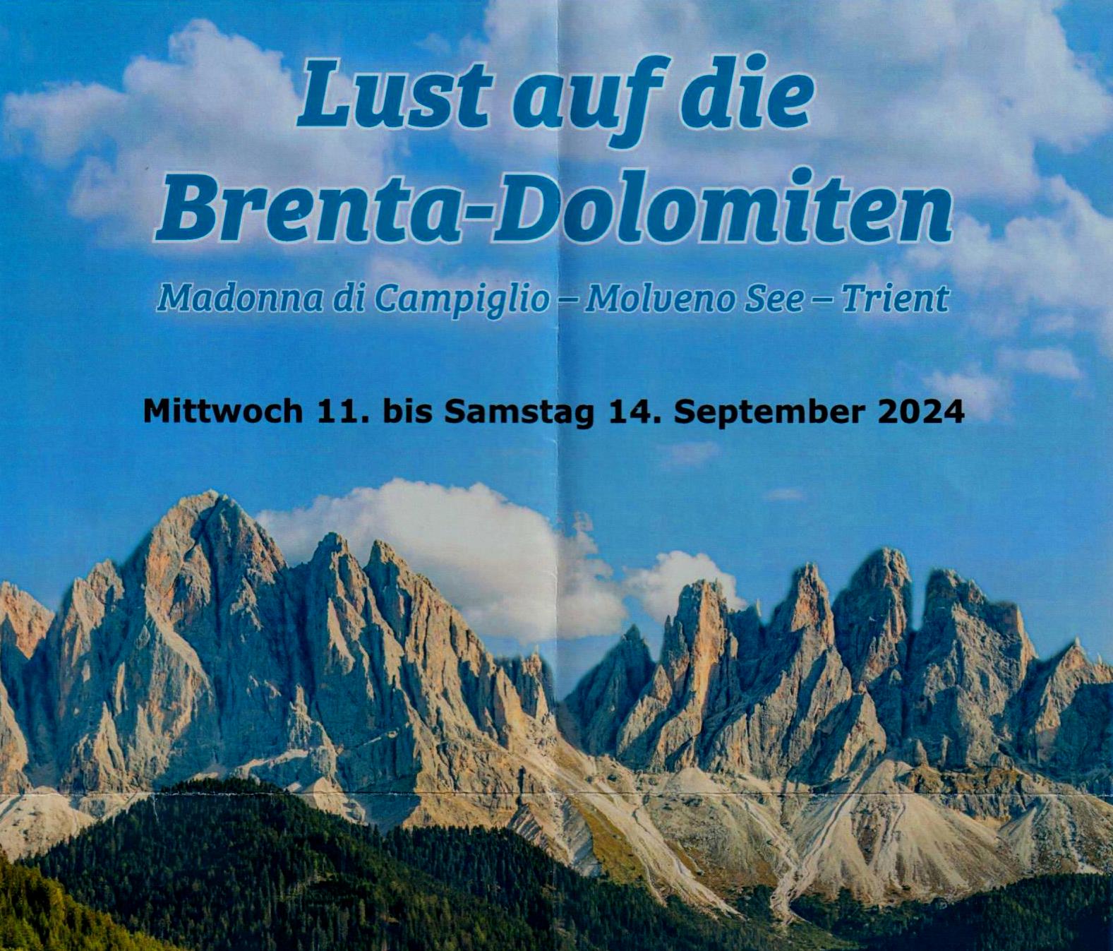 Am 11. September startete unsere 4 tägige Herbstreise in das Trentino. Eine Provinz in Oberitalien, die den wenigsten bekannt war. Unser Ziel war die Region um die Paganella Berge und die Brenta Dolomiten im Westen der Hauptstadt Trient. Die Anreise ging über den Felbertauern, Lienz in das Pustertal. Im Südtiroler Pustertal, bei der Ortschaft Vintl, machten wir Mittagspause beim Lodenwirt und einige stöberten noch im danebengelegenen Lodengeschäft. Unser Ziel war dann das Hotel „Arcobaleno“ in der Ortschaft „Fai della Paganella“, hoch über dem Etschtal auf ca. 900m Höhe. Einige nutzten noch die Zeit zu einem Spaziergang zu Aussichtspunkten hoch über dem Etschtal mit einem tollen Ausblick Richtung der Stadt Trient und die umliegenden Berge.