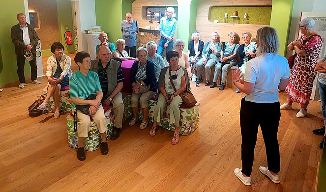 Am Mittwoch, 11. 6. 2025 führte unser Tagesausflug zuerst zur Fa. Sonnenmoor in Anthering. Bei einem interessanten Vortrag erfuhren wir viel über die Firmengeschichte, über die verschiedenen Produkte und die Möglichkeiten zur Anwendung. Das waren interessante Hinweise über die verschiedenen Heilwirkungen von Pflanzen in der Natur und besonders wertvoller Stoffe im Moor. Vieles basiert auf Aufzeichnungen über die Erfahrungen unserer Vorfahren.