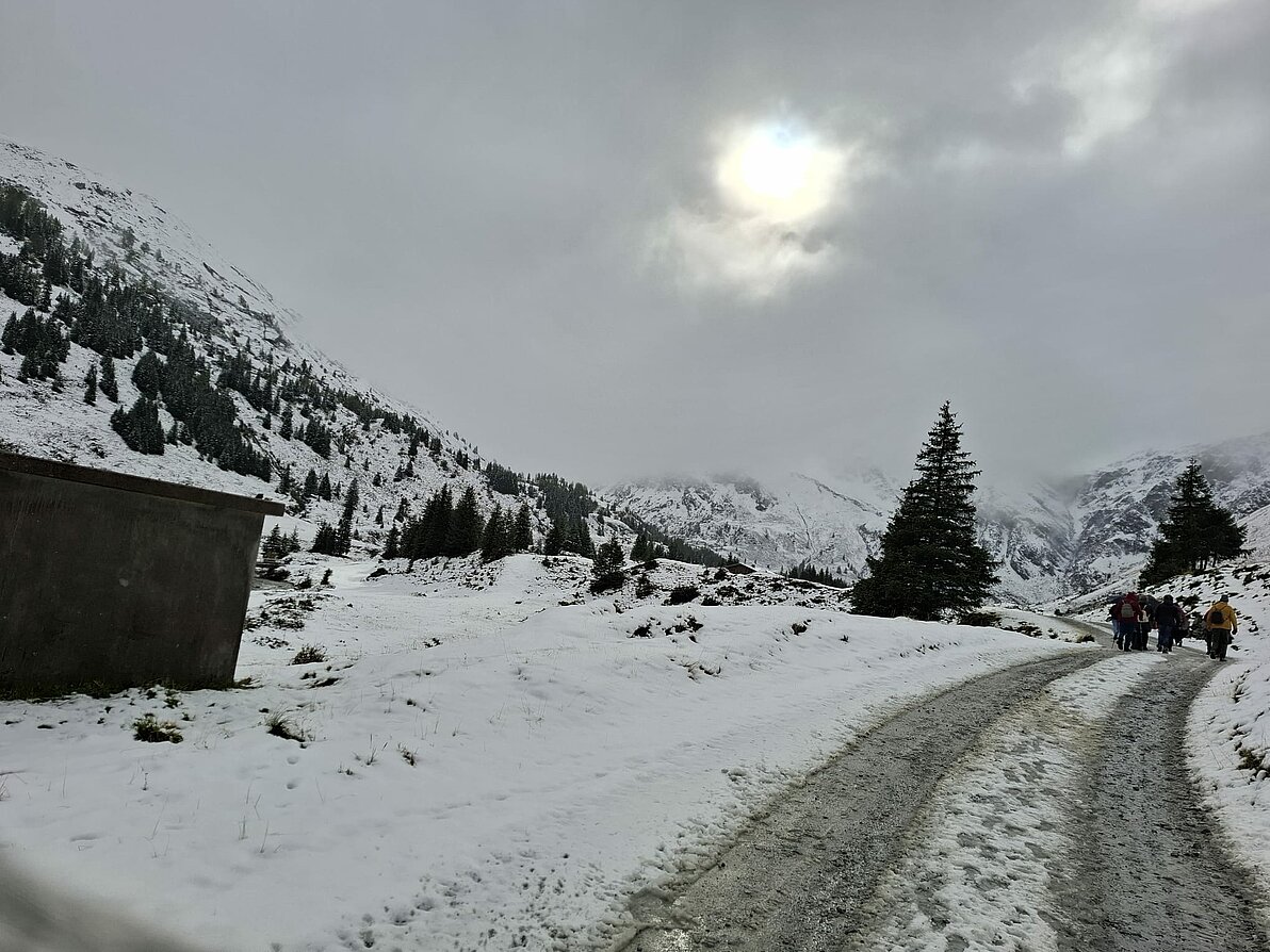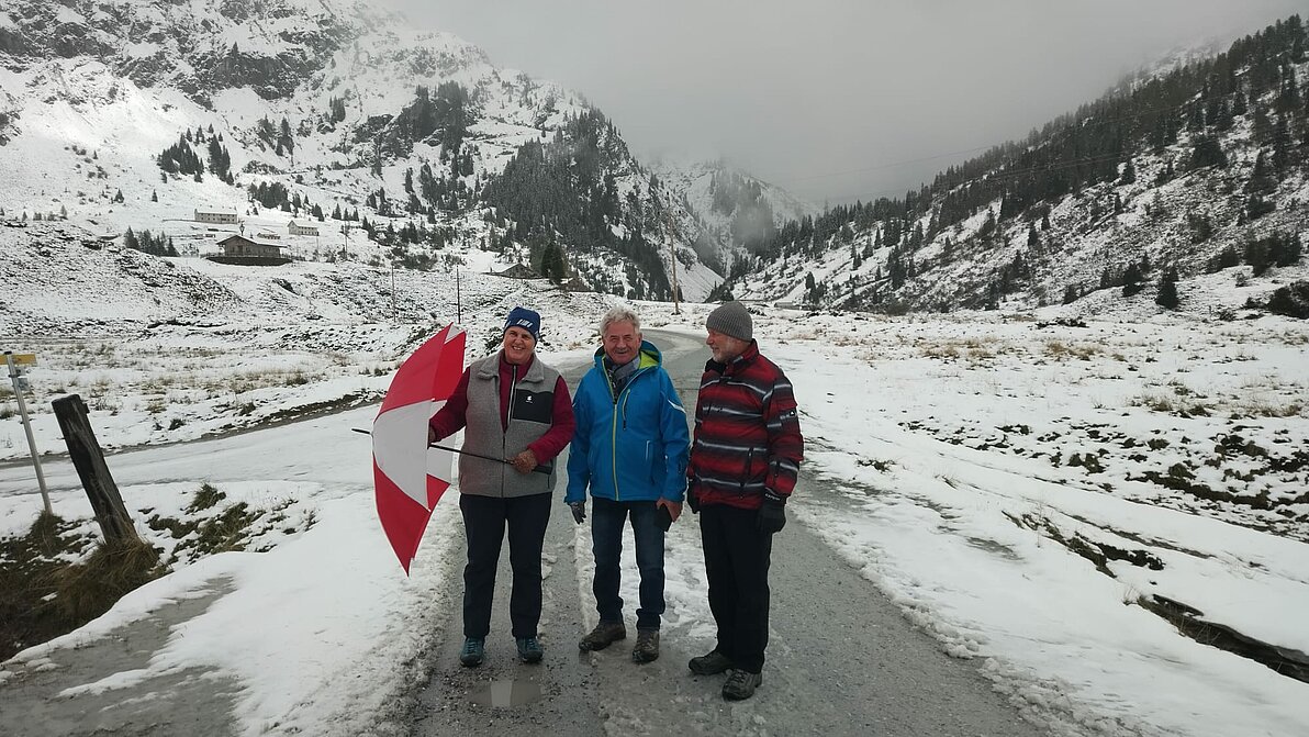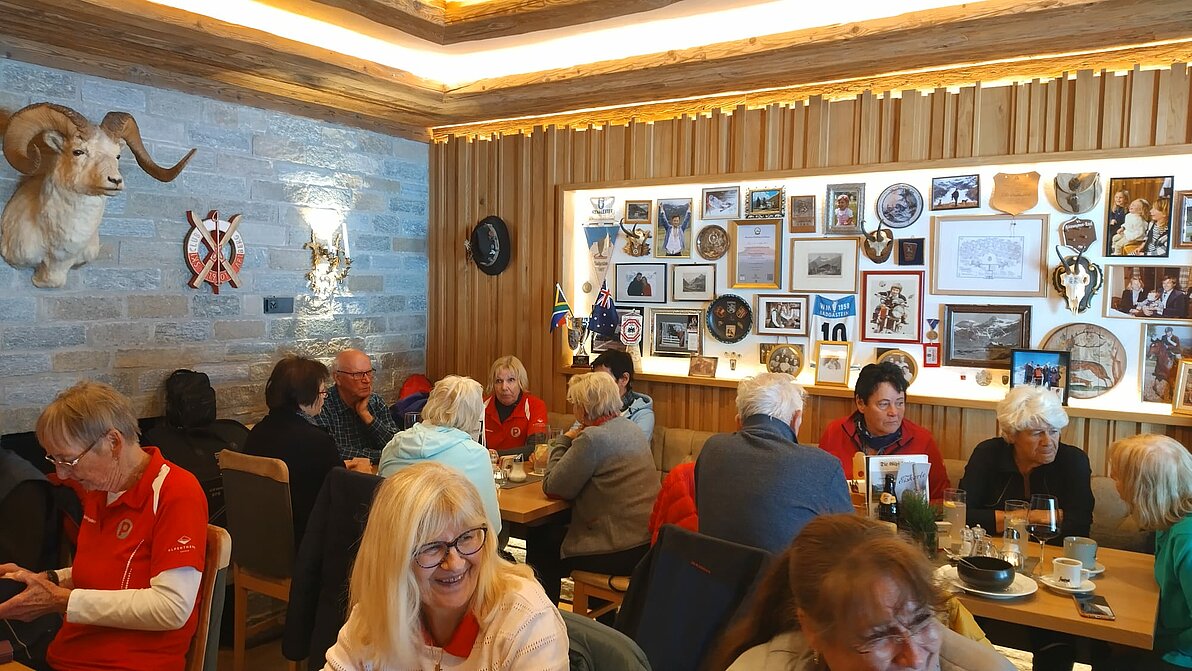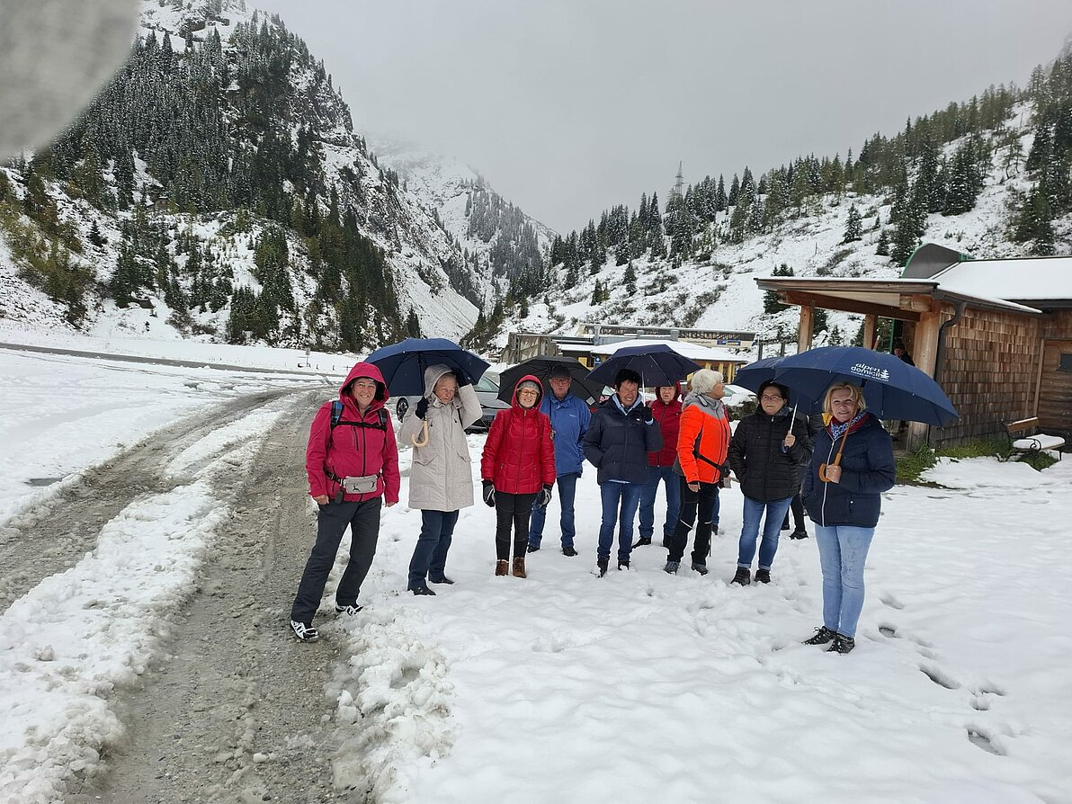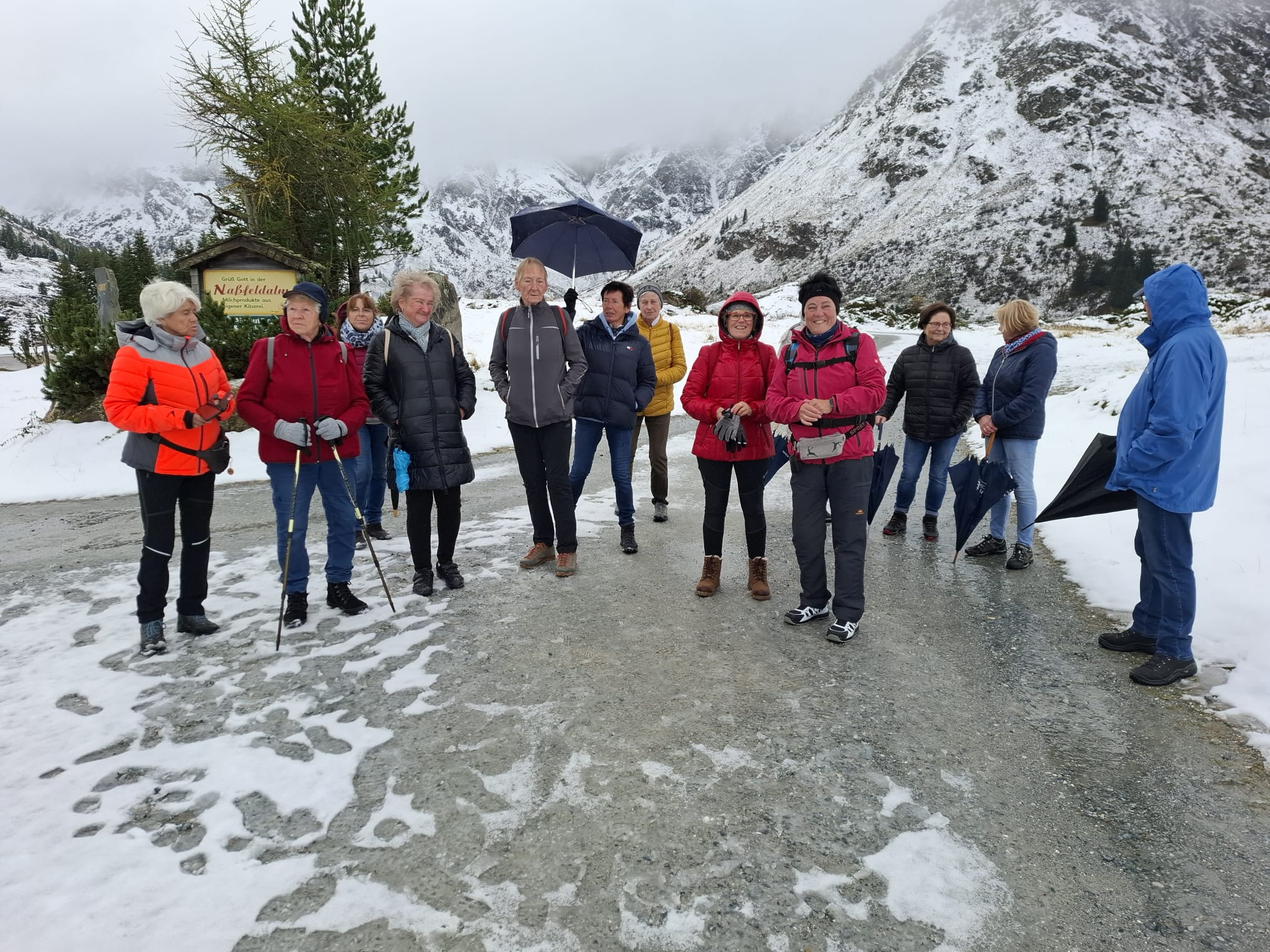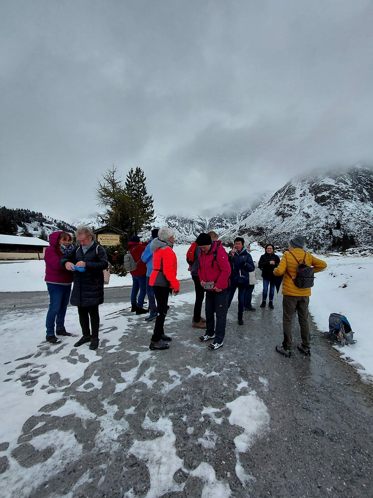 19 Personen gingen mit Christl und Rosalinde bei der gemeinsamen Abschlusswanderung, wie heuer meistens üblich bei herrlichem Sauwetter und fast Minustemperaturen in Sportgastein im Schnee bis zur Genossenschaftshütte. Nach der Schnapspause zum wärmen wurde umgedreht und zum Valeriehaus zurückmaschiert. Hier kamen noch 10 Weitwanderer, die den ganzen Weg von der Bushaltestelle bis zum Valeriehaus zu Fuß geschaftt haben, noch dazu. Dort wurde es gemütlich und bei gutem Essen und Trinken konnte uns keiner die gute Laune verderben. Unsere Hausmusikanten Werner und Andreas spielten noch einige Stücke, die meisten zum Mitsingen, auf.
