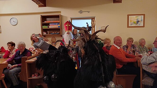 Auch heuer fand wieder unter zahlreicher Beteiligung ein Krampus-Kränzchen in unserem Stüberl am Sportplatz statt. Nach Kaffee und Kuchen warteten alle Anwesenden gespannt auf die junge Angertalpass. Der Nikolaus hielt eine würdevolle Ansprache und verteilte anschließend an die Braven ein Geschenk, aber auch die nicht immer ganz Braven bekamen eines. Doch für die kamen gleich darauf die Krampusse und machten einen Höllenwirbel. Aber als der Nikolaus pfiff, knieten sich alle nieder wie es sich gehört und lauschten dem Nikolaus seinen Abschiedswünschen zu. Danke auch an Stefan Schmid für das tolle Video zu sehen auch unter www.krampusvideos.at