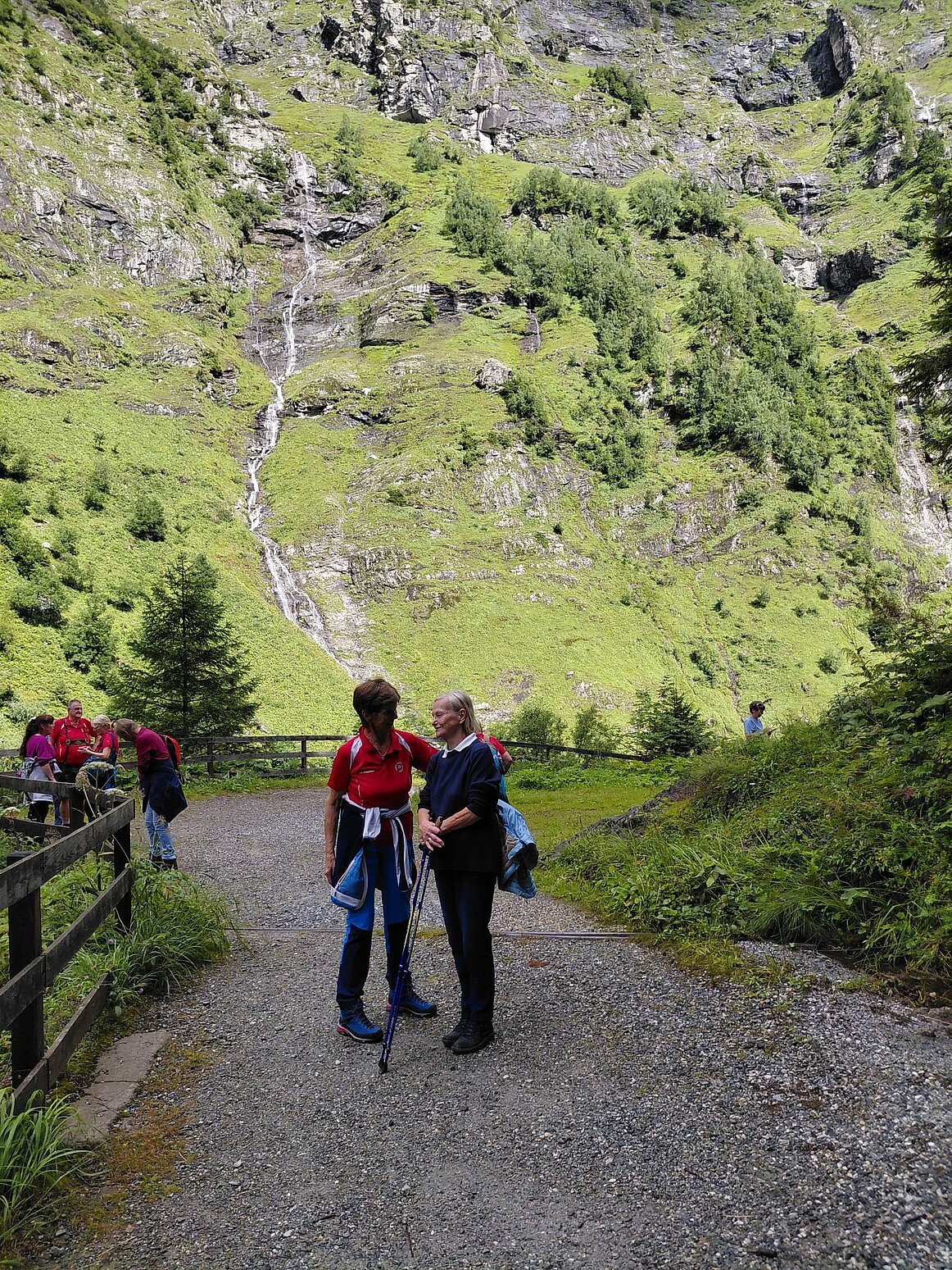 Da am Dienstag wieder einmal sehr schlechtes Wetter war, wurde die Fahrt zum Matreierhaus abgesagt und dafür am Donnerstag kurzerhand eine Wanderung nach Sportgastein auf dem alten Nassfeldweg, der im Vorjahr durch ein Unwetter total zerstört wurde (Brücke weggerissen und Weg abgerutscht und verschüttet), eingeschoben. Man muss dem Bauhof der Gemeinde Bad Gastein ein großes Lob dafür aussprechen, denn er ist jetzt sehr schön zu gehen und alles Tip Top. Er wäre für mich ein Geheimtipp für die schönsten Plätze Österreichs. Zum Abschluß gab es die obligatorische Verköstigung im Valeriehaus.