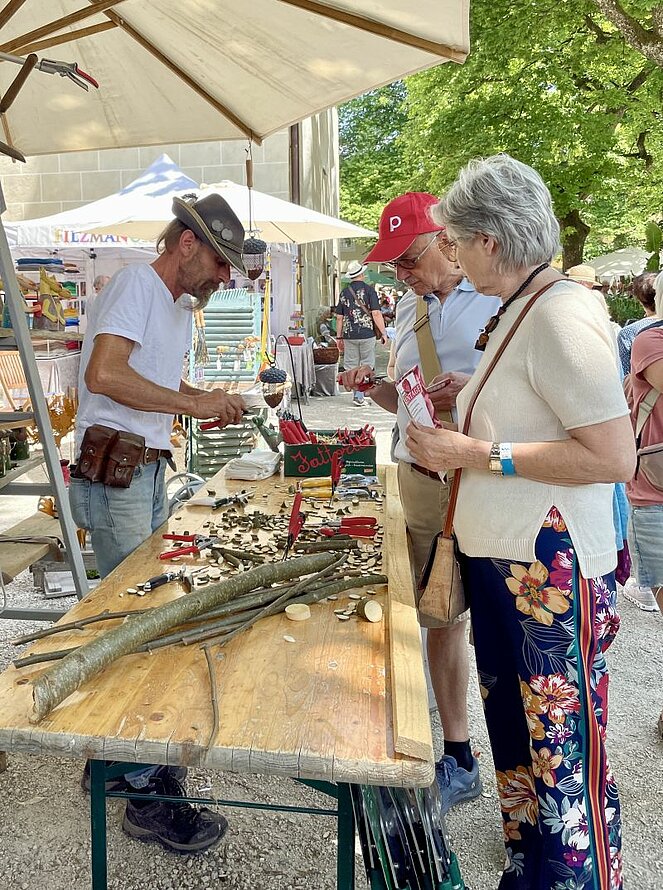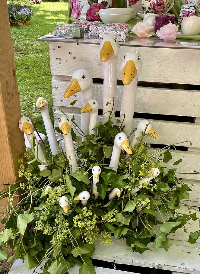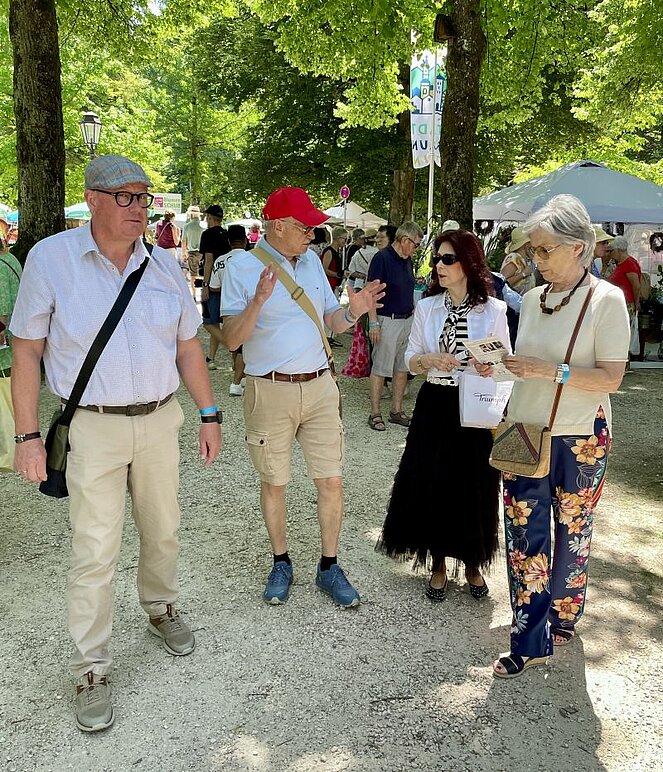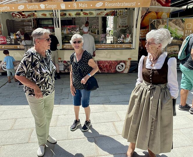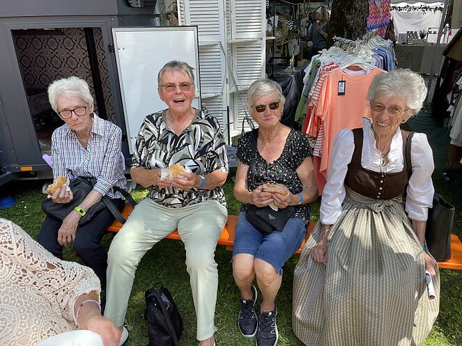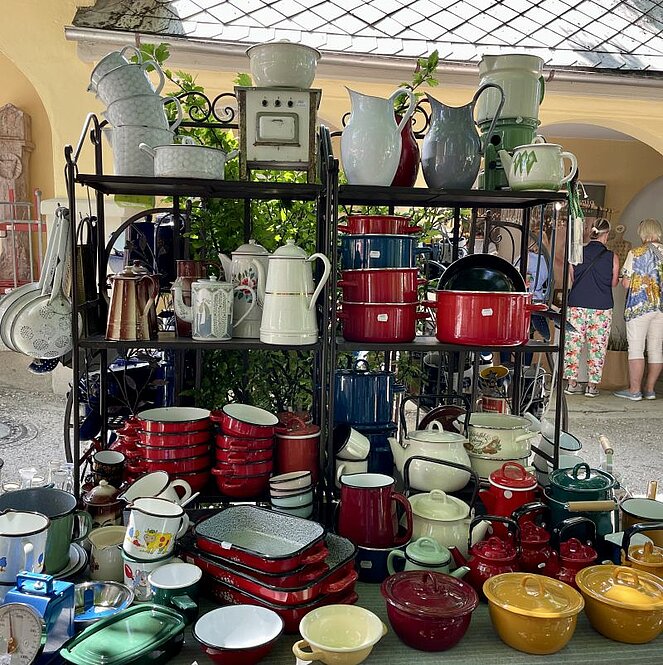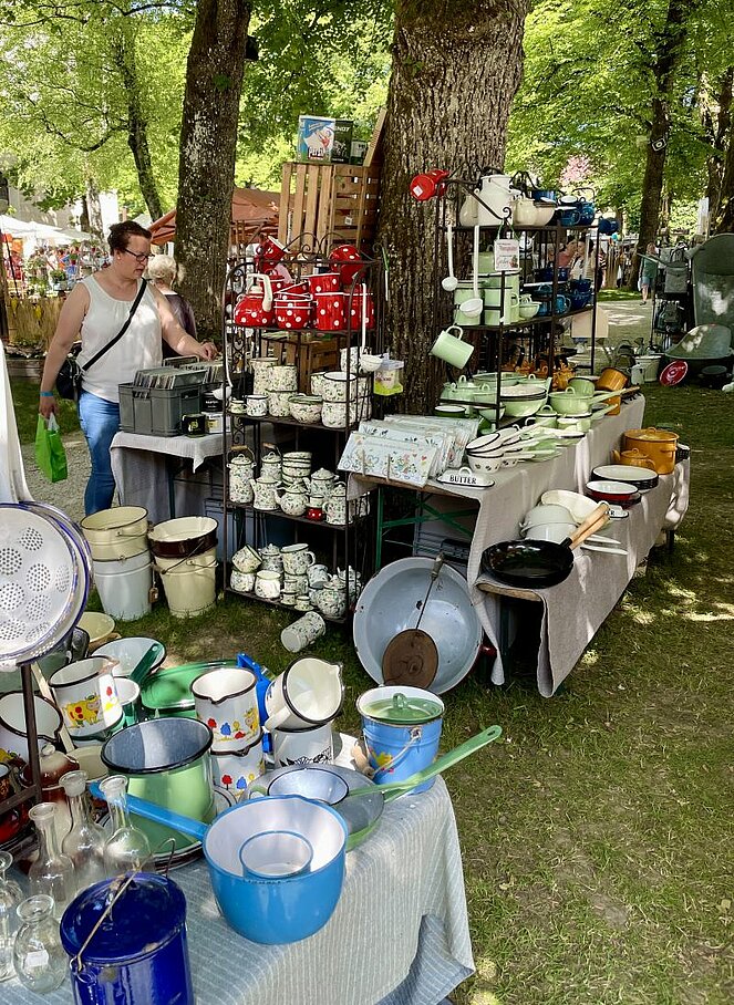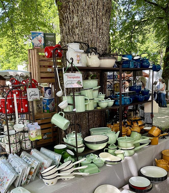 Also machten sich 41 gut gelaunte Frauen und Männer der Ortsgruppe Pfarrwerfen am Freitag, dem 13. Juni nach Bayern auf. An der Grenze wurde der Pensionistenbus anstandslos und mit einem Lächeln durchgewunken. Bei schönstem Sonnenschein und warmen Temperaturen streiften wir durch den gut beschatteten Traunsteiner Stadtpark und freuten uns über die bunten Blumen, die lustigen Dekoartikel, Verkaufsstände mit Süßem aber auch Nahrhaftem und so manches altes Stück Geschirr, das unsere Großeltern schon verwendet haben könnten.