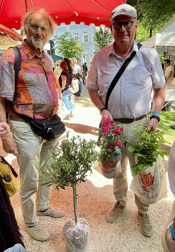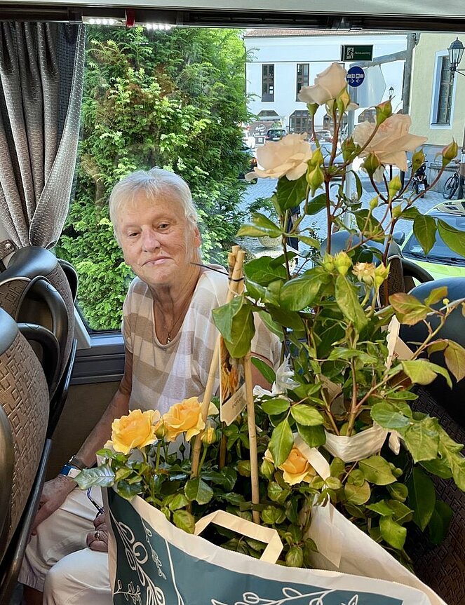 Bei der Rückfahrt teilten wir uns den Bus mit etlichen Rosenstöcken, Olivenbäumchen, Blumen, Windrädern und Dekofiguren für den Garten. Wir hatten reichlich Beute gemacht! Lieber Sepp, wieder einmal hast du einen wunderschönen Ausflug für uns gefunden und die Fahrt super organisiert, herzlichen Dank dafür.