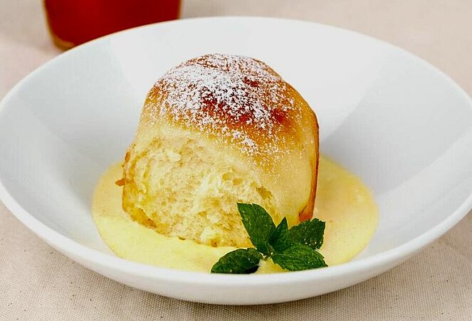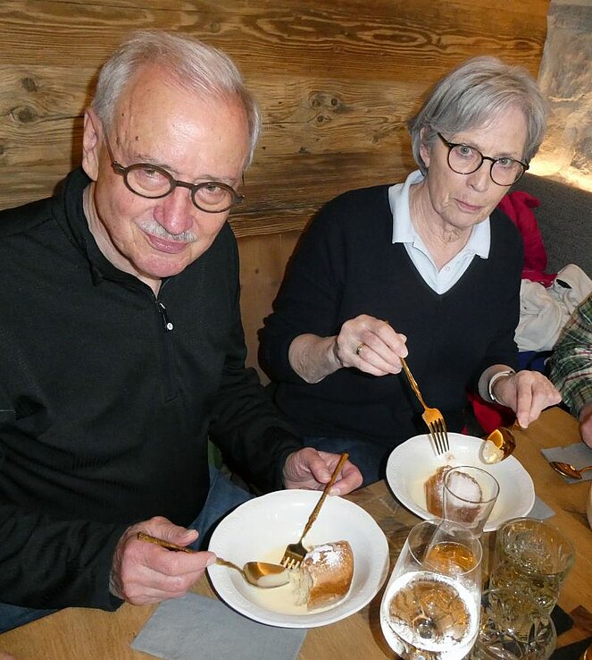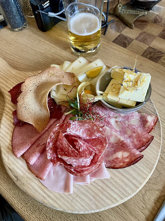 Nach der 8km langen abwechslungsreichen Strecke erwartete uns die Pfarrwirtin bereits mit Getränken, einer feinen Brettljause und den berühmten Buchteln mit Vanillesoße.