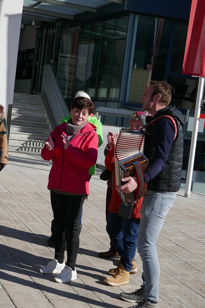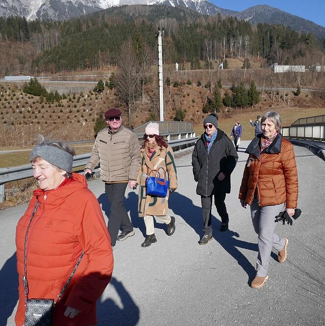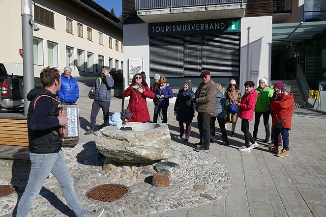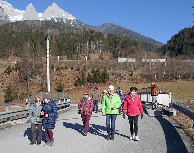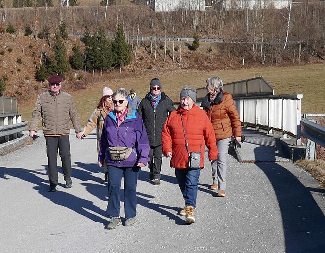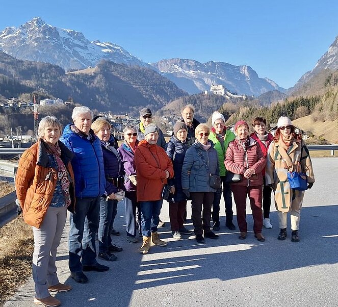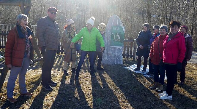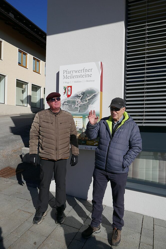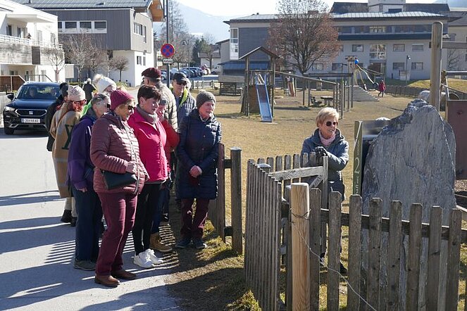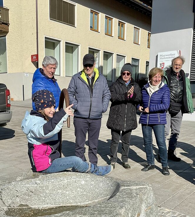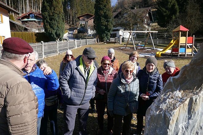 16 Mitglieder und ein kleiner Gast folgten dem Ruf und trafen sich am Mittwoch, dem 19. Februar um 14.00 Uhr vor der Gemeinde beim Dorfbrunnen. Unsere Route führte auf den " Sagenhaftweg", dies ist einer der drei Wege entlang der neuen Pfarrwerfner Meilensteine, die anlässlich des 950-jährigen Jubiläums der Gemeinde errichtet wurden. Wir lasen Geschichten von Hügeln und Bergen über Feuer und Eis von Königen und Wasserfrauen