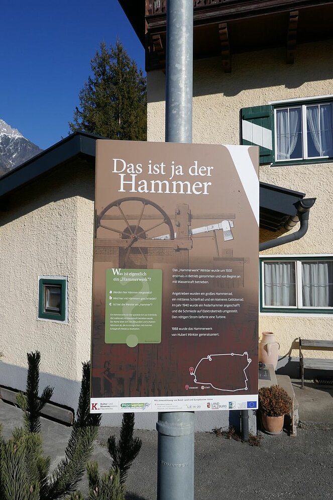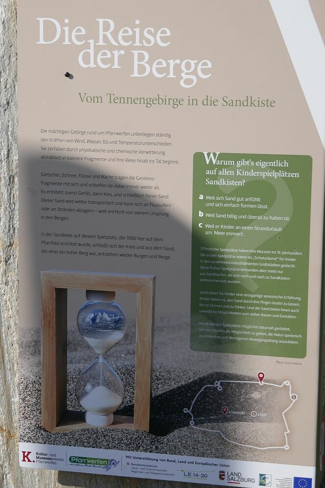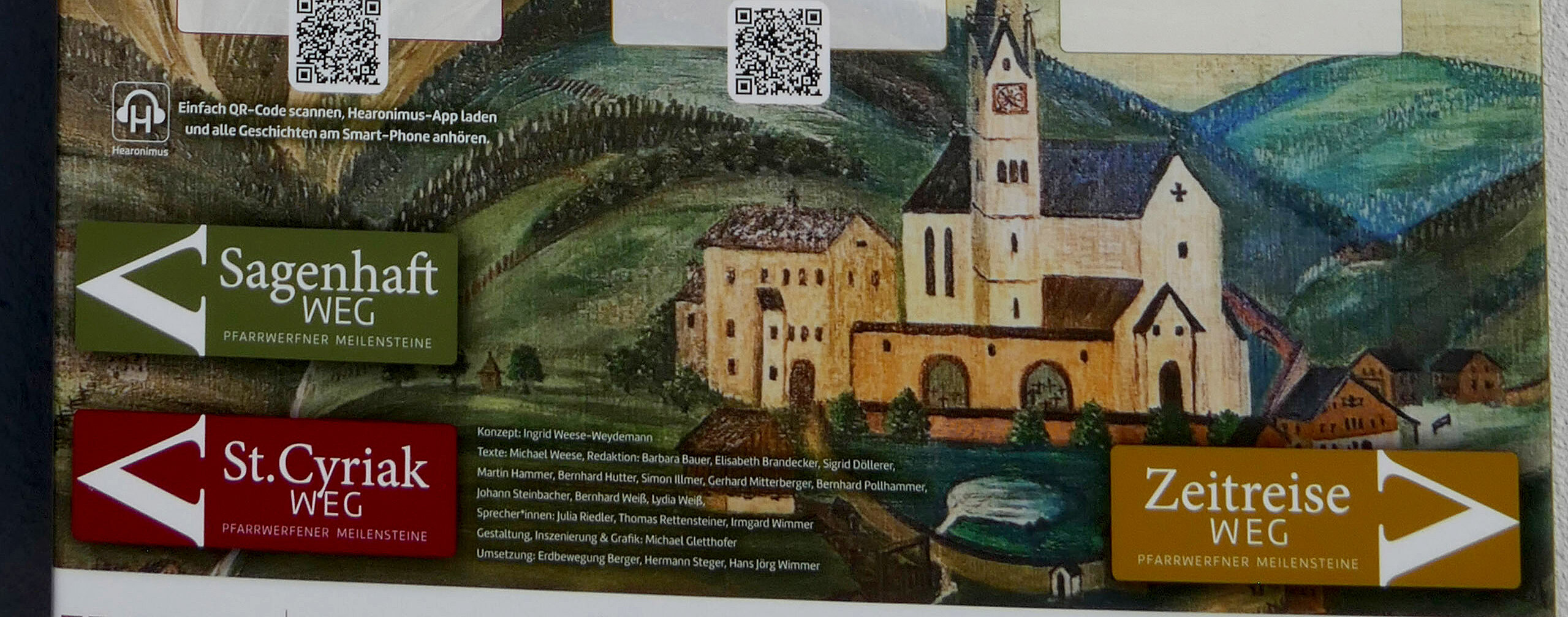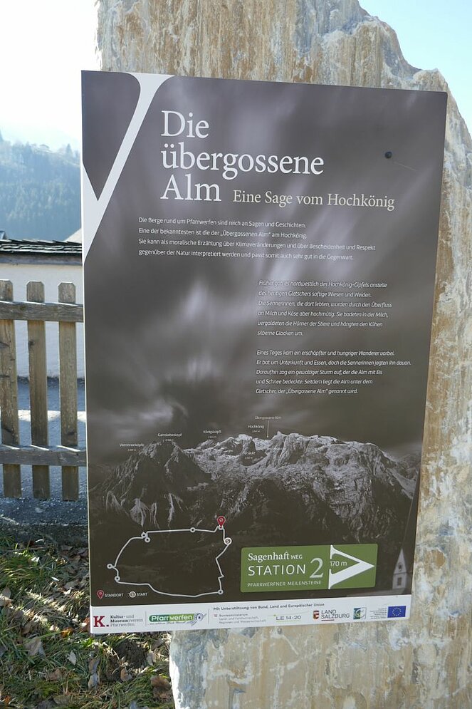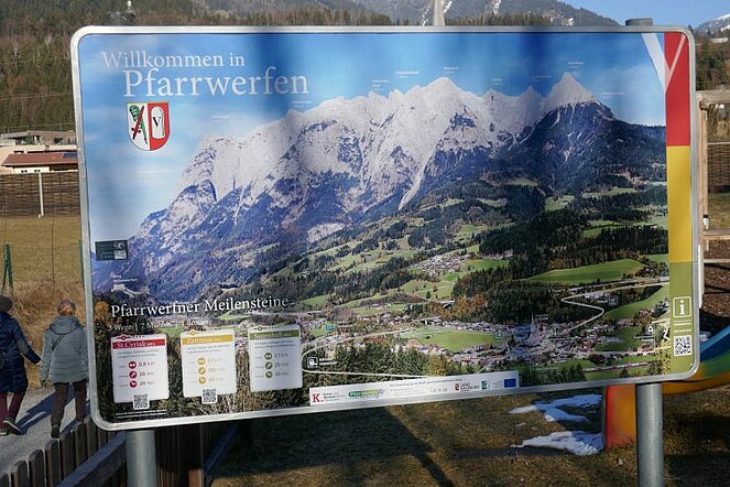 Der Weg führt über 2,5km die Weiglhofersiedlung in Richtung Wengergraben, von dort zur Odarsiedlung und dann den Treppelweg weiter zum Bahnhof Werfen. Auf der linken Salzachseite zurück nach Pfarrwerfen, wo wir auf den letzten Teil vom Sagenhaftweg trafen.
