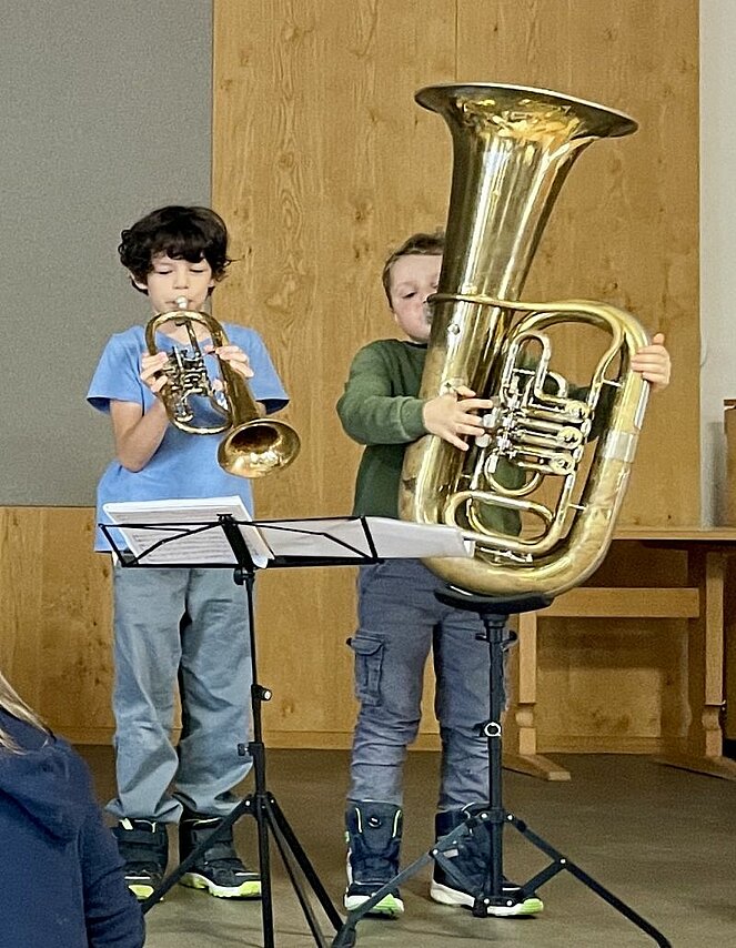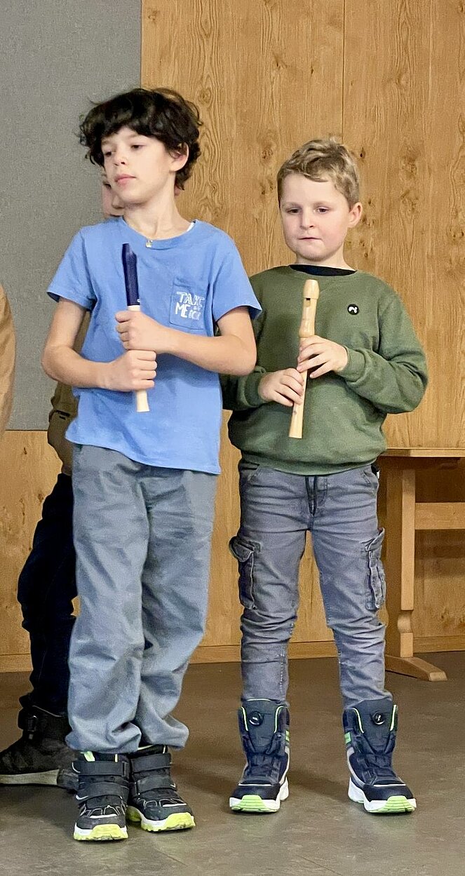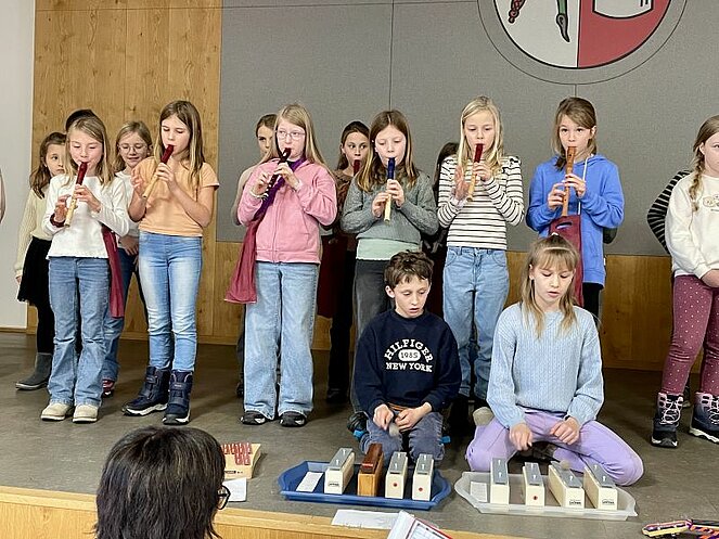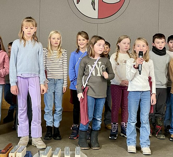 Wir waren zum Essen eingeladen und fleißige Bäckerinnen verwöhnten uns mit Keksen. Bei guten Gesprächen verging die Zeit wie im Flug und schon bald sangen und spielten die Kinder der 3. Klassen der Volksschule für uns aus dem Programm „Licht der Weihnacht“ unter der Leitung ihrer Lehrerinnen. Manchmal war dabei das gespielte Instrument fast so groß wie der Musikant.