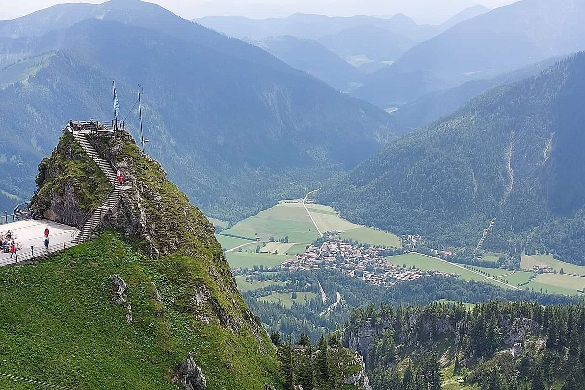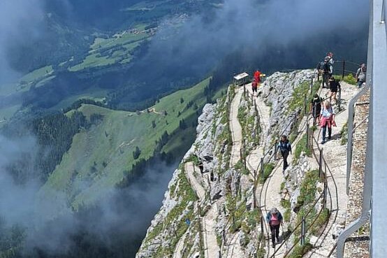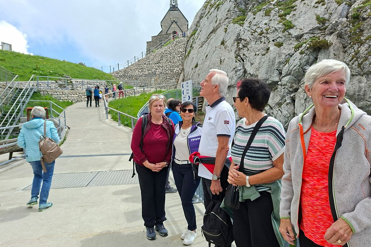 Ziel war der Talstation - Bahnhof der Zahnradbahn auf den Wendelstein. Nach 25minütigen Auffahrt mit Deutschland ältesten Hochgebirgsbahn, vorbei an Almwiesen, Wäldern sowie durch Tunnel, Galerien und Brücken erreichten wir die 1724m hochgelegene Bergstation. Mit traumhaften Ausblicken in alle Himmelsrichtungen, vom Großglockner bis zur Zugspitze wurden wir dabei belohnt. Nach einem Mittagessen im Panoramarestaurant des Wendelsteinhauses wurde von vielen noch die Bergkirche und die Schauhöhle besucht. Auch der Gipfel des Wendelsteins auf 1838 m war noch das Ziel einiger Wanderer. Mit einem Kaffee und Kuchen auf der Aussichtsterrasse und einem letzten faszinierenten Ausblick auf die umliegende Bergwelt wurde dieser Bergausflug abgeschlossen.