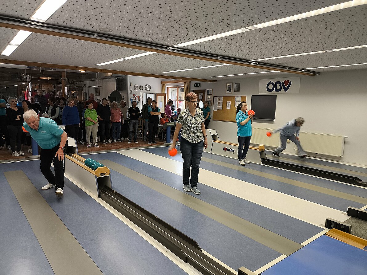 Pro Durchgang wurden 99 Schub gekegelt. Jeder in der Gruppe hatte 3 Schub, beim ersten Durchgang in die Vollen, beim nächsten Start abräumen. Am Ende jeden Durchgangs (99 Schub) stand der Durchgangsergebnis fest. Es wurde von 09:00 bis 12:30 fleißig gekegelt, Jubel nach „Kranzerl oder Sau“ aber auch traurige Gesichter wurden auf den Bahnen gesehen. Am Ende wurde zusammengerechnet (siehe Endergebnis), die Kegelwelt war wieder in Ordnung. Dieses einmal andere Kegeln bereitete allen viel Spaß. Die Freude am Kegelsport stand im Vordergrund, alle waren mit viel Eifer und Begeisterung am Start und freuen sich schon auf den nächsten Termin. Wenn auch „Du“ bei dieser netten „Keglerei“ dabei sein willst, herzlich willkommen, der Termin ist im Aktuellen Sportbericht 2025 angeführt.