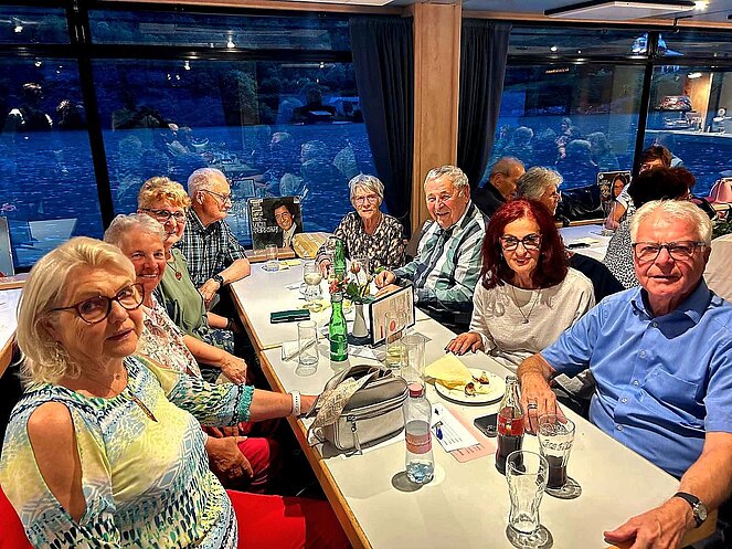 Die Bezirksorganisation Salzburg-Stadt war wieder mit 136 Pensionist/innen unterwegs. Auf dem Tanzschiff gab es mit "Pirnis Plattenkiste" 3 Stunden tolle Unterhaltung und gute Stimmung. Auch der Wettergott hatte ein Einsehen - es gab keinen Regen :-)