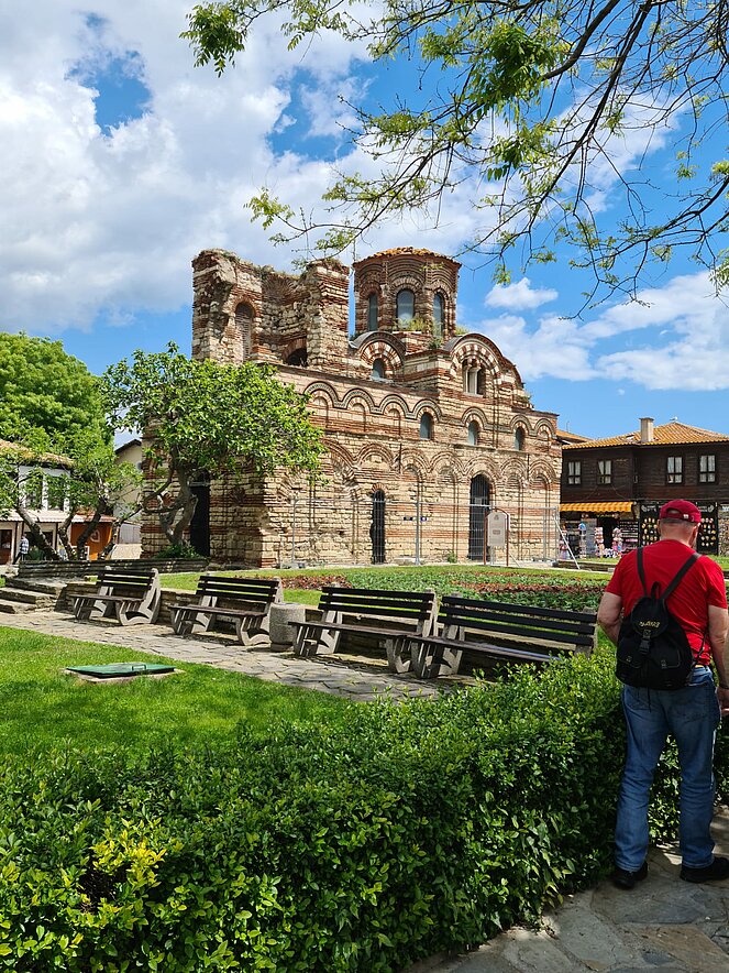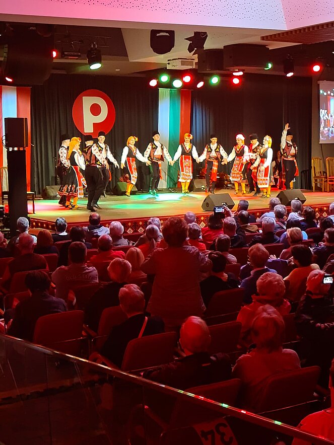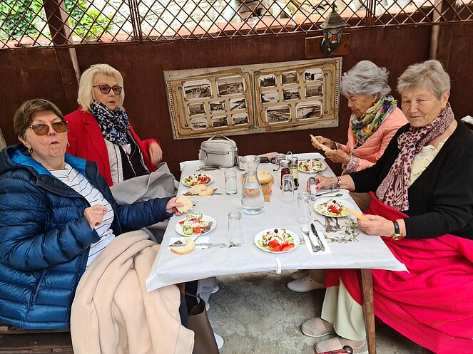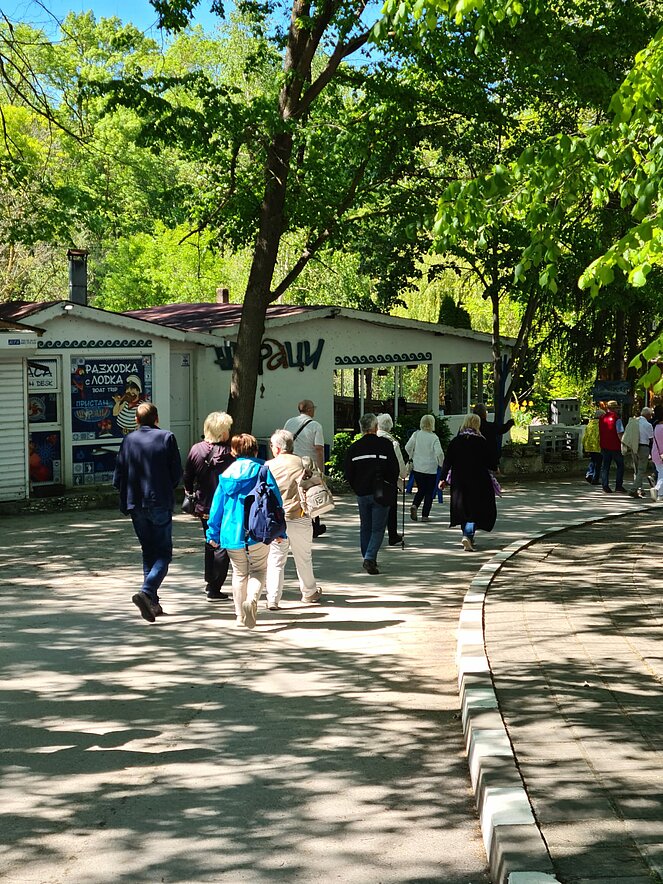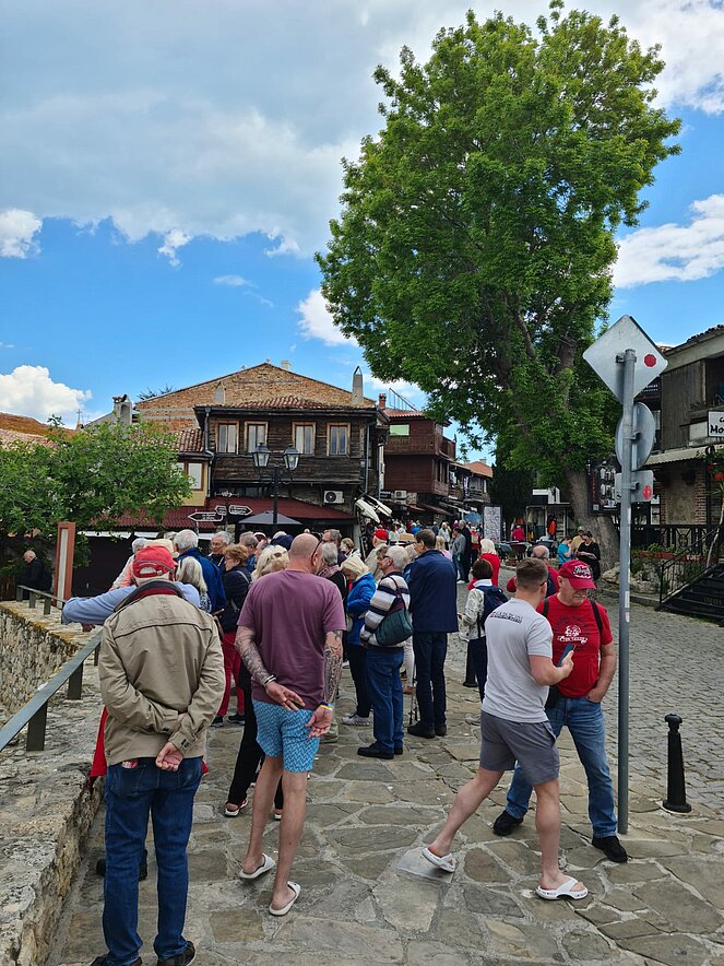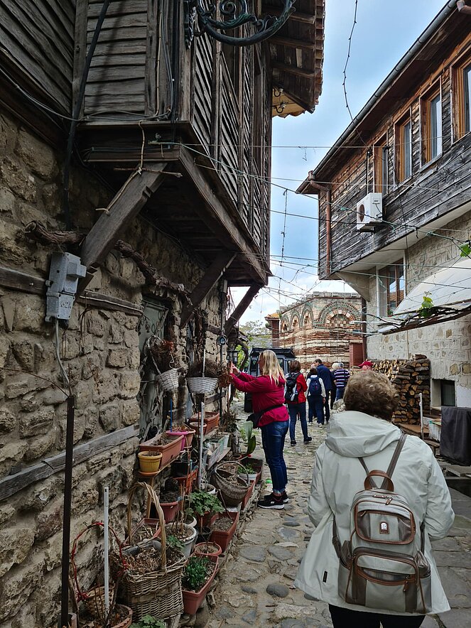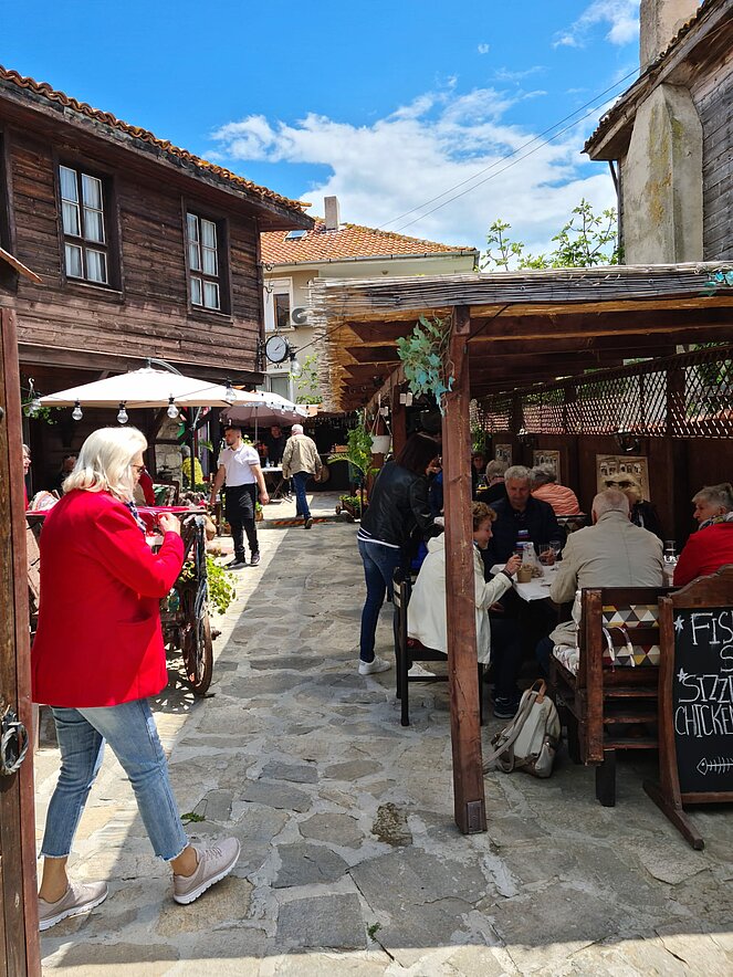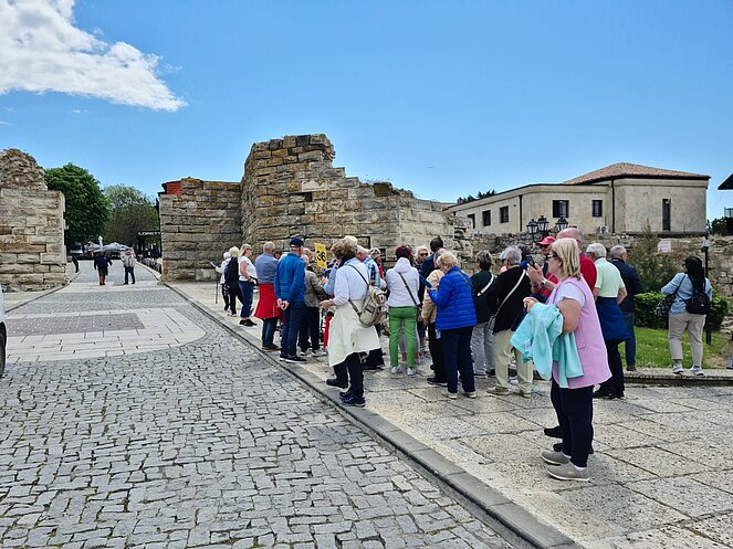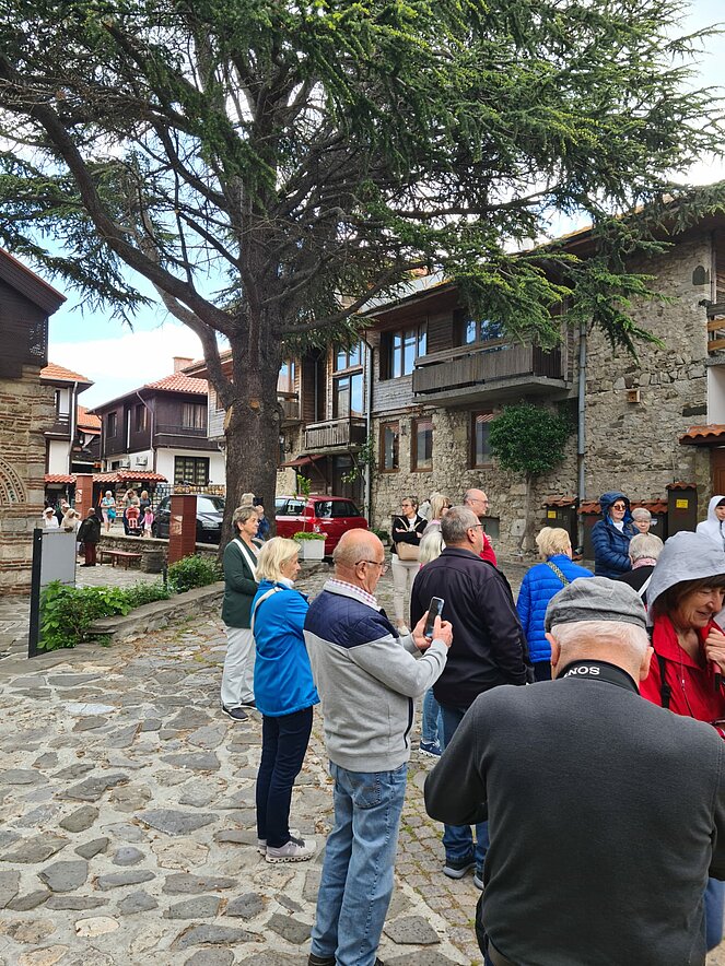 Wir wurden sehr herzlich im Hotel begrüßt und sind bei leisem Froschkonzert eingeschlafen. Am Sonntag Vormittag gab es ein Begrüßungsfest mit Folklore und Tanz. Am Nachmittag besuchten wir den Botanischen Garten. Am Weg dorthin machten wir halt beim Derwischen Kloster, einem mystischem Ort für Muslime u. Christen. Montag machten wir einen langen Strandspaziergang, bevor wir nach dem Mittagessen zur Minikreuzfahrt aufbrachen. Am nächsten Tag fuhren wir nach Varna. Am Weg dorthin besichtigten wir in Marcianpolis das Museum mit historischen Mosaiken u. Ausgrabungen. Weiter gings zum “Steinernen Wald“ mit einzigartigen Monumenten. In Varna angekommen, bestaunten wir im Museum den ältesten Goldschmuck und tolle Grabbeigaben. Bevor wir zur Stadtbesichtigung aufbrachen, hatten wir noch Freizeit. Überall war starker Rosenduft zu bemerken. Nach der Stadtbesichtigung in Varna, die wir zu Fuss erledigten, ging es müde nach Hause. Abschluss an der Poolbar. Am nächsten Tag ging es in die Weltkulturstadt Nessebar mit ihren entzückenden Holzhäusern. Nach einem sehr guten Mittagessen ging es weiter zur Wein- u. Schnapsverkostung. Müde fuhren wir dann nach Hause….. Das ursprüngliche Bulgarien lernten wir am nächsten Tag kennen. Wir begannen mit einer Bootsfahrt am Kamtchia zur Mündung ins Schwarze Meer. Im Landesinneren besuchten wir das Haus von Oma Ratka (89 Jahre!) in Solnik. Ein großer Garten, alte Geräte, eine kleine Schnapsbrennerei und alte, sehr schöne Trachten, welche alle von Oma Ratka und ihrer Familie angefertigt worden sind. Wir wurden mit vorzüglichem Essen verwöhnt wurden. Folkloretänze und Gesang machen den Tag unvergesslich.