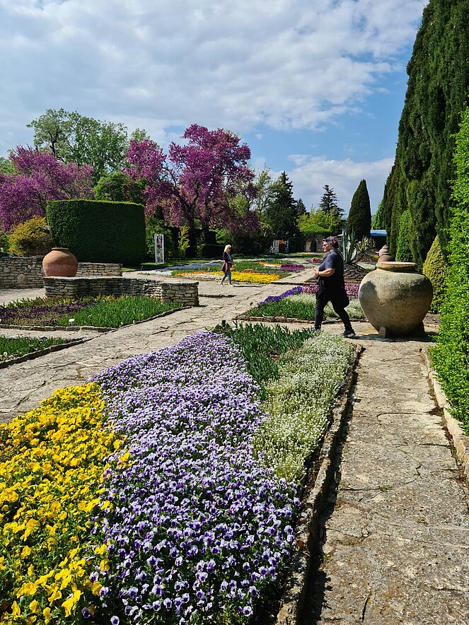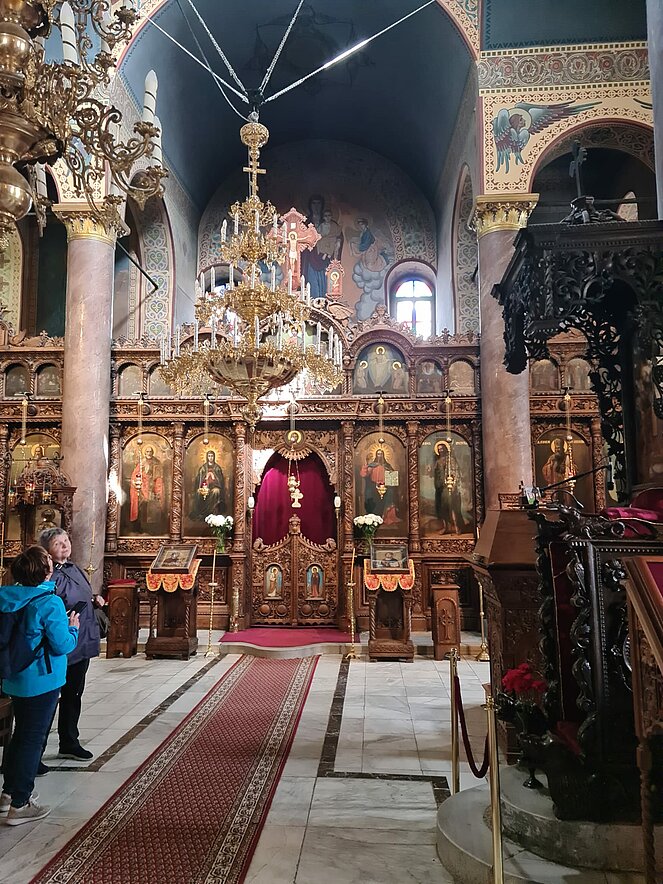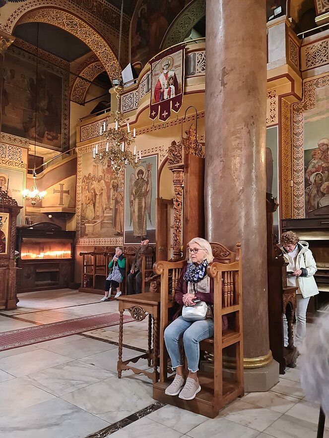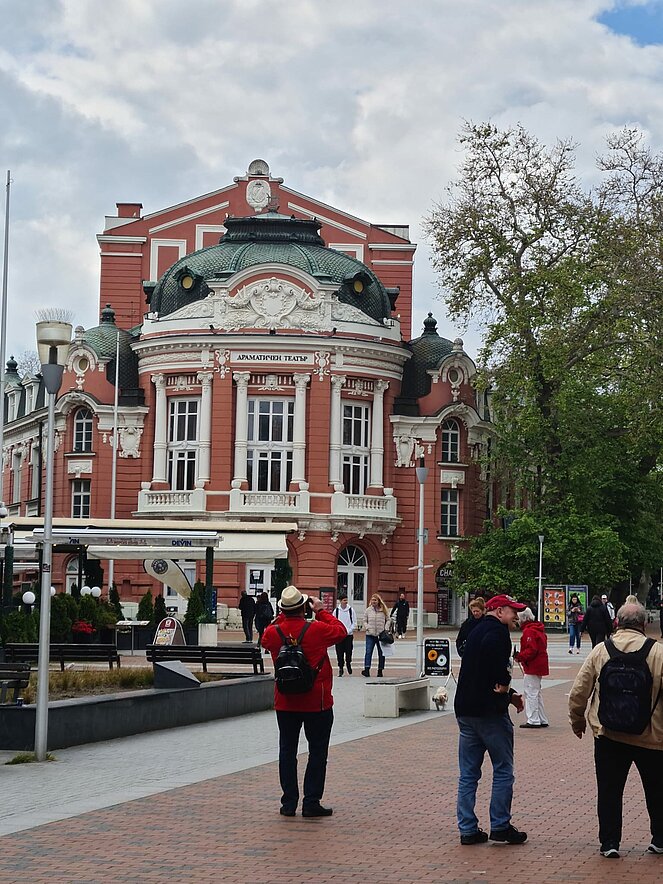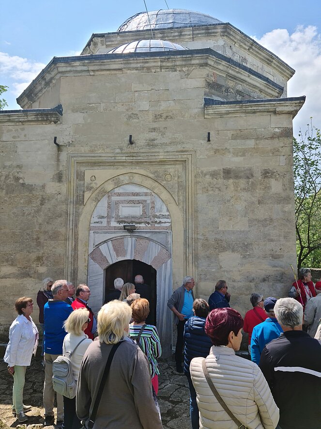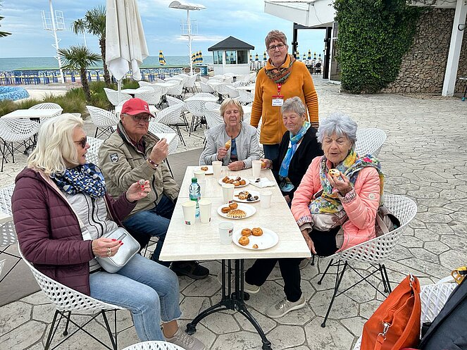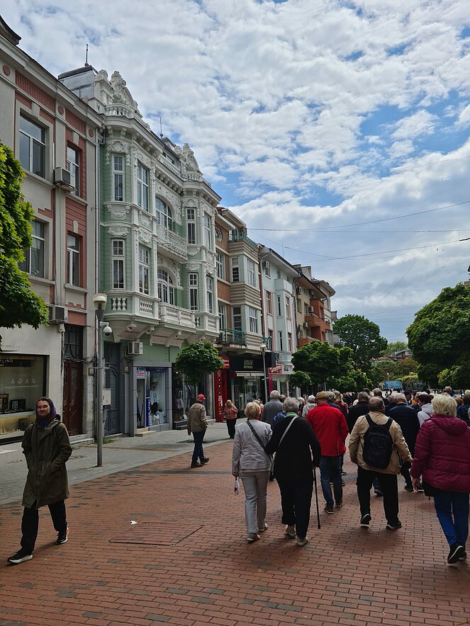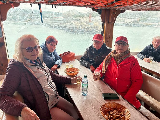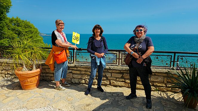 Wir wurden sehr herzlich im Hotel begrüßt und sind bei leisem Froschkonzert eingeschlafen. Am Sonntag Vormittag gab es ein Begrüßungsfest mit Folklore und Tanz. Am Nachmittag besuchten wir den Botanischen Garten. Am Weg dorthin machten wir halt beim Derwischen Kloster, einem mystischem Ort für Muslime u. Christen. Montag machten wir einen langen Strandspaziergang, bevor wir nach dem Mittagessen zur Minikreuzfahrt aufbrachen. Am nächsten Tag fuhren wir nach Varna. Am Weg dorthin besichtigten wir in Marcianpolis das Museum mit historischen Mosaiken u. Ausgrabungen. Weiter gings zum “Steinernen Wald“ mit einzigartigen Monumenten. In Varna angekommen, bestaunten wir im Museum den ältesten Goldschmuck und tolle Grabbeigaben. Bevor wir zur Stadtbesichtigung aufbrachen, hatten wir noch Freizeit. Überall war starker Rosenduft zu bemerken. Nach der Stadtbesichtigung in Varna, die wir zu Fuss erledigten, ging es müde nach Hause. Abschluss an der Poolbar. Am nächsten Tag ging es in die Weltkulturstadt Nessebar mit ihren entzückenden Holzhäusern. Nach einem sehr guten Mittagessen ging es weiter zur Wein- u. Schnapsverkostung. Müde fuhren wir dann nach Hause….. Das ursprüngliche Bulgarien lernten wir am nächsten Tag kennen. Wir begannen mit einer Bootsfahrt am Kamtchia zur Mündung ins Schwarze Meer. Im Landesinneren besuchten wir das Haus von Oma Ratka (89 Jahre!) in Solnik. Ein großer Garten, alte Geräte, eine kleine Schnapsbrennerei und alte, sehr schöne Trachten, welche alle von Oma Ratka und ihrer Familie angefertigt worden sind. Wir wurden mit vorzüglichem Essen verwöhnt wurden. Folkloretänze und Gesang machen den Tag unvergesslich.