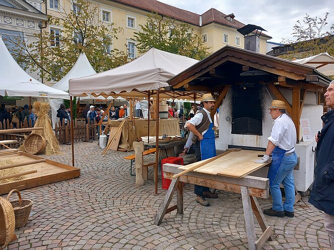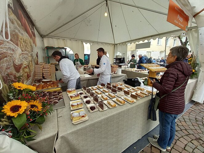 Jedes Jahr im Herbst findet in Brixen der traditionelle Brot- und Strudelmarkt statt, den wir samstags besuchten. Rund um den Dorfplatz präsentierten Bäckereien und Konditoreien landestypische Brot- und Backspezialitäten.