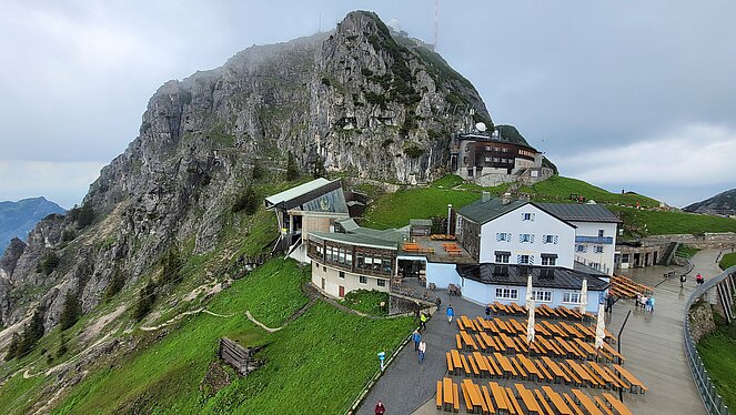 Mit der Zahnradbahn gings in 30. min auf 1723m Seehöhe zur Bergstation.