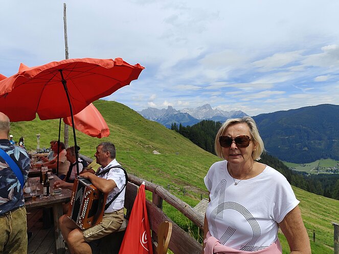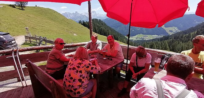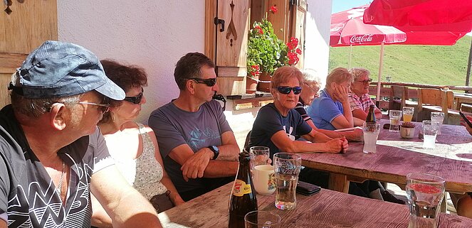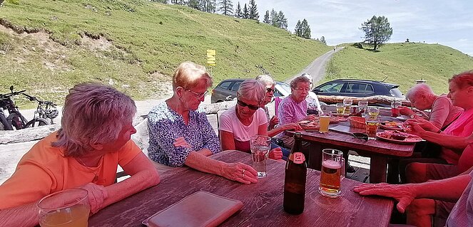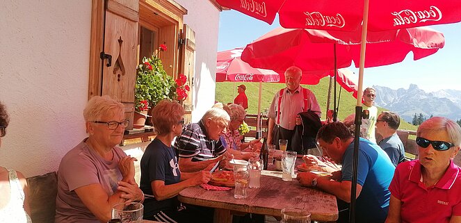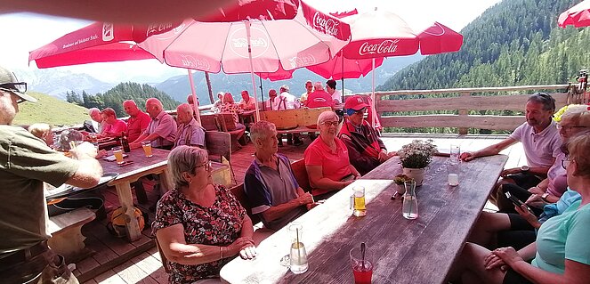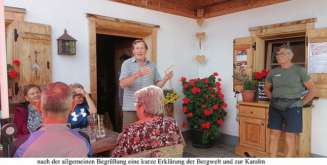 42 Mitglieder der Ortsgruppe Annaberg-Lungötz wanderten, radelten oder fuhren mit dem organisierten Taxi am Freitag den 26. Juli zur Karalm. Vorsitzender Sepp Schlager begrüßte sichtlich erfreut die Teilnehmer, besonders begrüßt hat er den Ehrenvorsitzenden Eberhard Zanner, das Ehrenmitgied Martin Menneweger, den Bezirksvorsitzenden Max Stock und dessen Gattin Waltraud Stock.