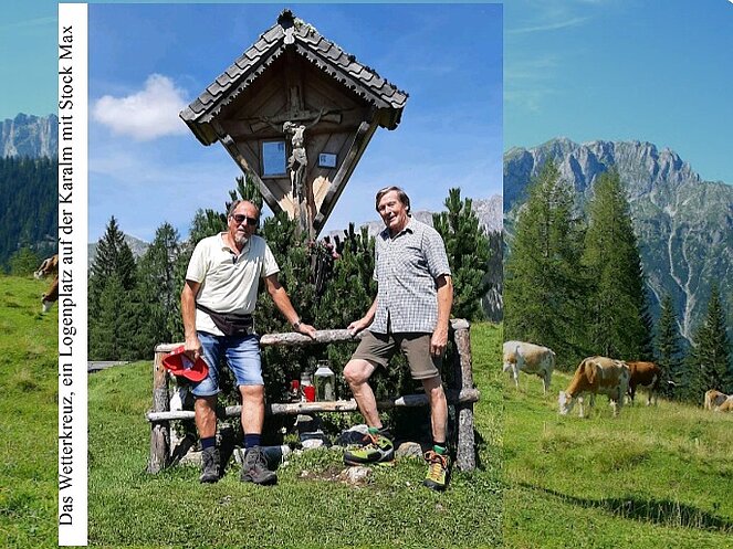 Sepp erzählte die Geschichte der Alm und der Bedeutung des Wetterkreuzes. Die Berge rundherum wurden mit Ehrfurcht betrachtet und benannt, so hat Sepp auch auf die naheliegende Koreinhöhe, den schönen Aussichtsberg hingewiesen und auf so manche Möglichkeiten für Schitouren.