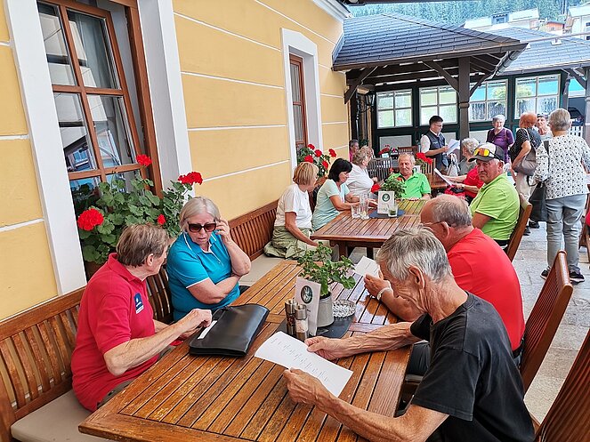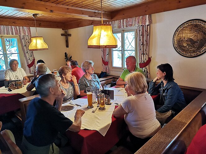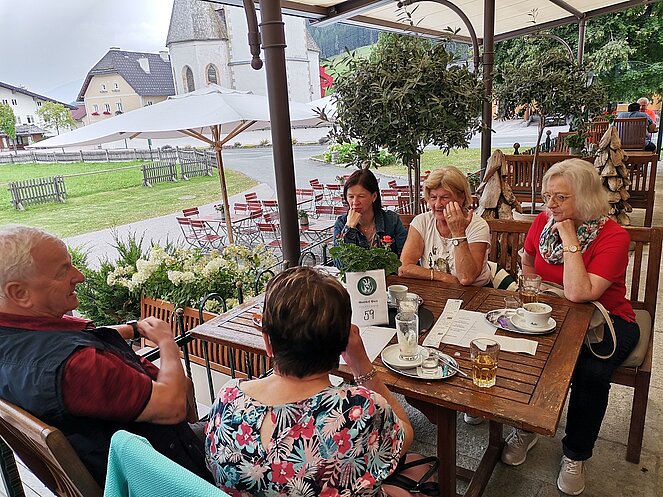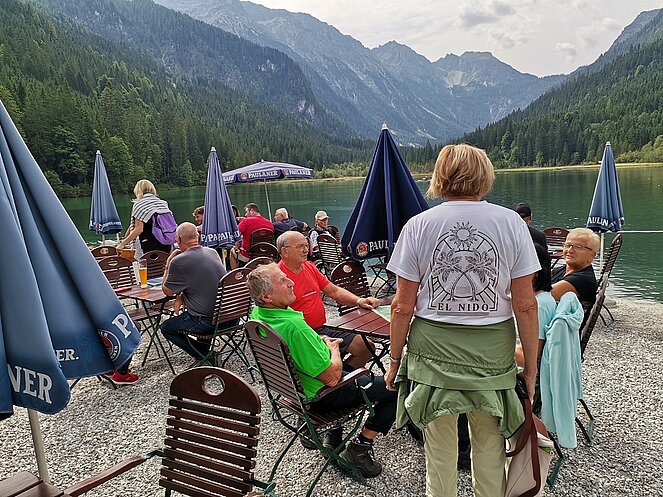 Einige haben nach dem Mittagessen noch einmal den See umrundet - eine Runde dauert weniger als 45 Minuten. Auf der Rückfahrt bedankt sich Sepp noch einmal bei Eberhard für die Idee, mit dem Bus nach Kleinarl/Jägersee zu fahren zur Pflege der Gemeinschaft. Weiters weist Sepp noch auf den Tagesausflug zum Achensee und zum Rofan-Gebirge am 3. September hin. Er bedankt sich bei allen für die große Beteiligung und teilt mit, dass er aufgrund seines Gesundheitszustandes sein Amt als Vorsitzender unseres Vereins zurücklegen möchte :-(