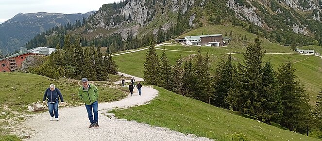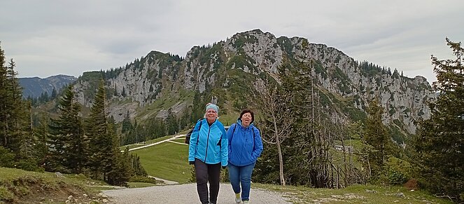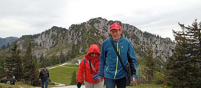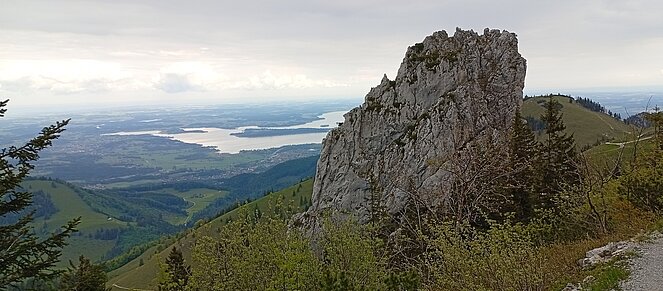 Der Weg dorthin war zu Beginn zwar recht steil, doch nach etwa 40 Minuten hatten wir das Ziel erreicht. Bei halbwegs gutem Wetter konnten wir unterwegs immer wieder innehalten und den herrlichen Ausblick auf das umliegende Bergpanorama sowie den glitzernden Chiemsee genießen.