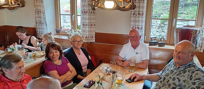 Nach einer ausgiebigen und gemütlichen Mittagspause auf der Steinlingalm traten wir den Rückweg an – wieder mit der Seilbahn talwärts – und fuhren weiter mit dem Bus zum nahegelegenen Gasthof Café Pauli. Dort ließen wir den Ausflug bei Kaffee, Torte und einem erfrischenden Eis gemütlich ausklingen.