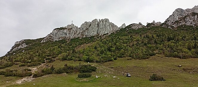 Von dort aus ging es gleich nostalgisch weiter: Mit der historischen Kampenwandbahn, die bereits seit 1956 ihren Dienst versieht, schwebten wir gemütlich zur Bergstation hinauf. Oben angekommen, setzten wir unsere Tour zu Fuß fort – unser Ziel war die idyllisch gelegene Steinling-Alm.