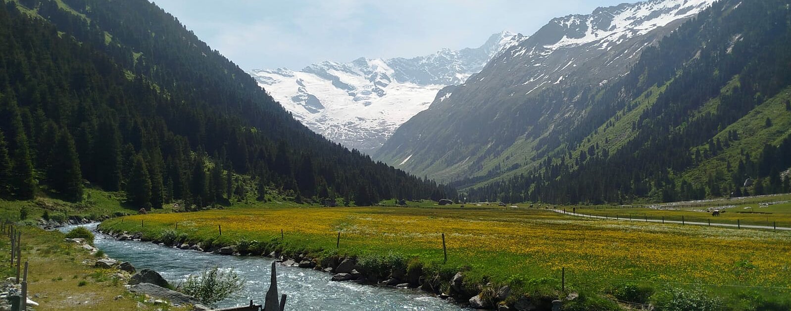 Gegen 10 Uhr begannen wir unsere Tour entlang der Straße, die sich an den Wasserfällen hinaufschlängelt. Oben am Plateau angekommen, wurden wir mit einem traumhaften Blick ins Krimmler Achental belohnt. Wir fuhren etwa 20 Kilometer tief ins Tal hinein. Bei der Südtiroler Hütte legten wir eine wohlverdiente Rast ein. Der Gletscher war zum Greifen nah und auch eine rund 800 Jahre alte Zirbe beeindruckte uns sehr.