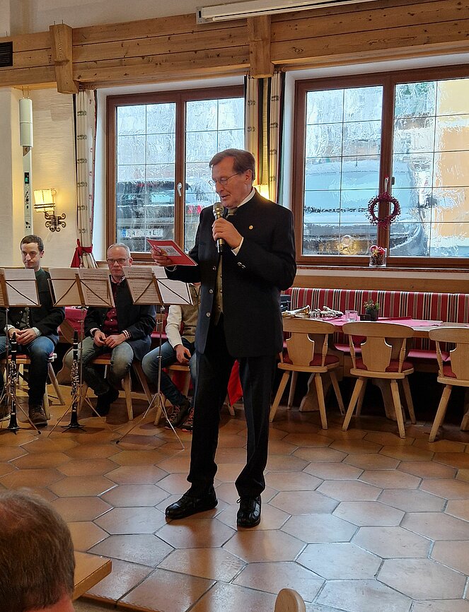 Im voll besetzten Postwirtssaal wurden wir von den Obmännern Sepp Schlager und Martin Hirscher begrüsst. Für feierliche Stimmung sorgten das Annaberger Klarinetten-Ensemble und der Annaberger Männerchor unter der bewährten Leitung von Peter Labacher, der auch das Programm zusammenstellte. Für besinnliche und lustige Texte sorgte Peter Kainhofer.