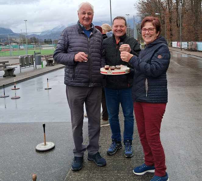 Bei bester Stimmung begann das Bratwurst Stockschießen.