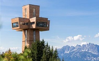 Am Nachmittag fahren wir weiter nach St.Ulrich am Pillersee. Mit dem Sessellift geht es auf die Buchensteinwand und dort weiter zum Jakobskreuz. Das Jakobskreuz ist das größte begehbare Gipfelkreuz der Welt und bietet eine grandiose Aussicht über die Kitzbüheler Alpen. Die vier Aussichtsplattformen lassen sich mit einem Personenaufzug leicht erreichen und sind somit auch für Menschen mit körperlicher Einschränkung bequem erreichbar.