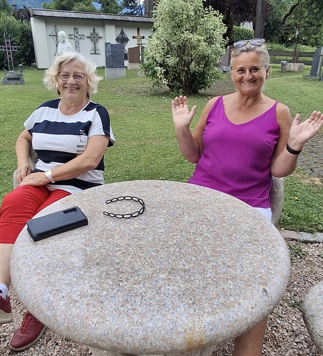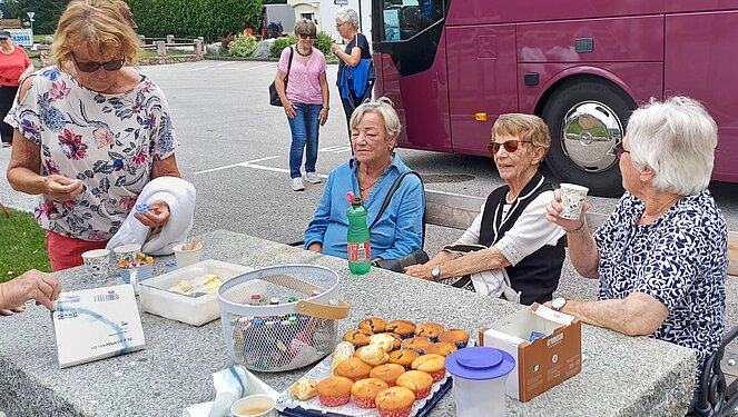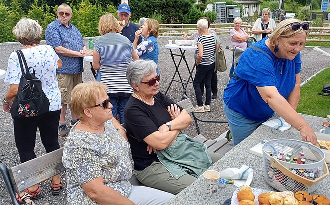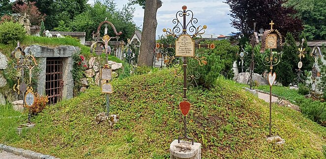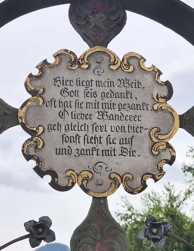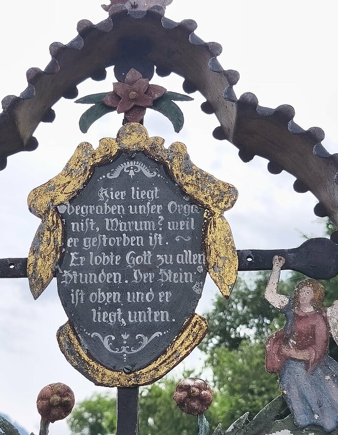 Anschließend fuhren wir weiter zum Museumsfriedhof nach Kramsach - er ist auch bekannt als "Lustiger Friedhof". Die originellen Grabkreuze sind teilweise aus dem 18. und 19. Jahrhundert und stammen aus Bayern, Tirol, Südtirol und Salzburg. Die Eisenkreuze mit ihren humorvollen und teils scharfzüngigen Inschriften sorgten für viele Schmunzler. Beim Parkplatz legten wir eine Kaffeepause ein, wo wir mit selbstgebackenen Köstlichkeiten verwöhnt wurden.
