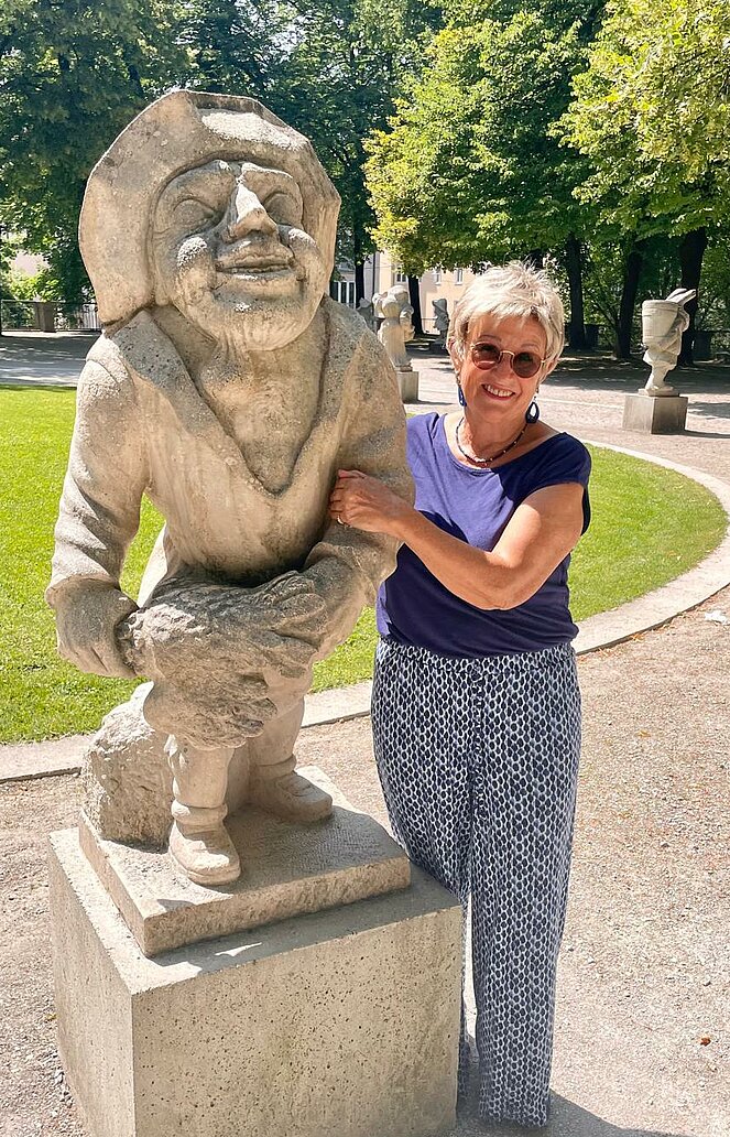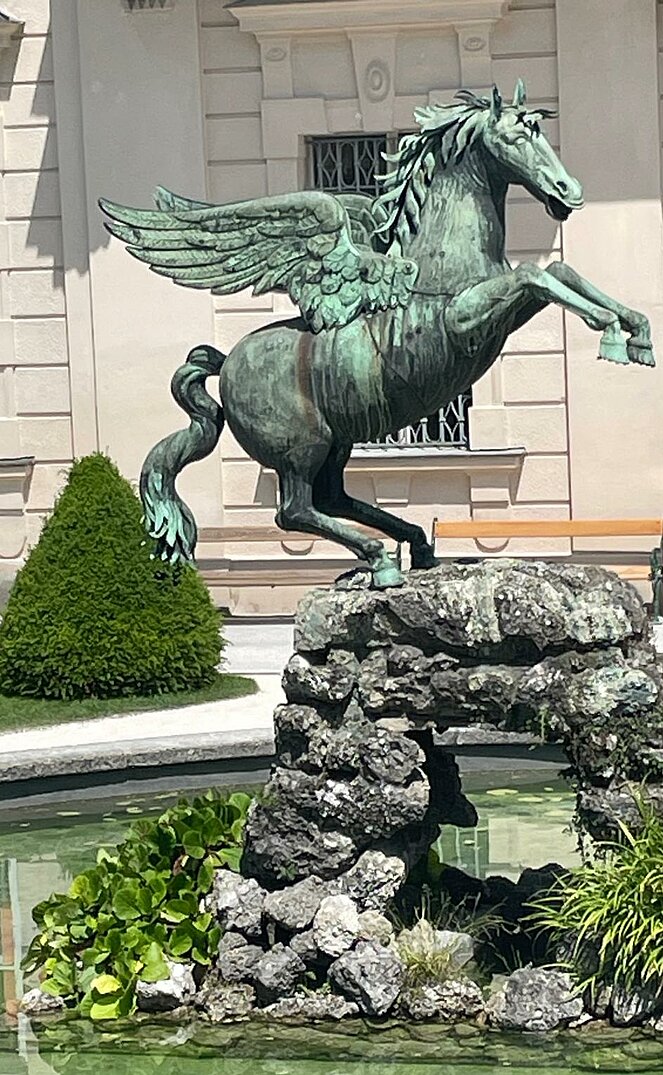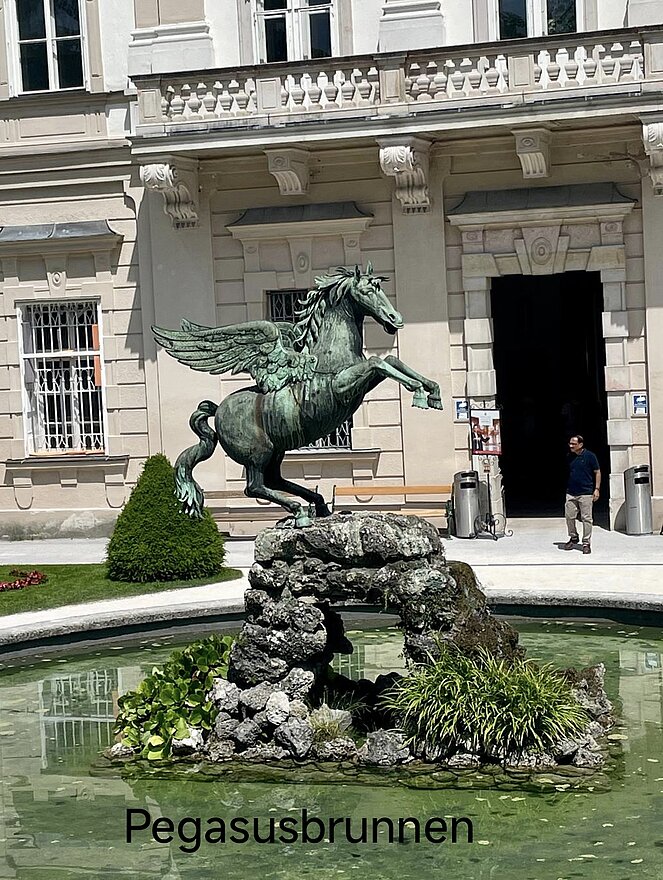 Bei unserem Spaziergang, den wir sehr gemütlich gestalteten, war es sehr heiß, sodass wir das Wissenswerte natürlich nur im Schatten der Bäume erzählten. Unsere Gruppe erfuhr nach der griechischen Mythologie erzählt, wie der Pegasus geboren wurde. Nach dem Besuch des Zwerglgartens gings weiter auf der alten Stadtmauer zum Heckentheater. Alle waren sehr erstaunt, als sie das Ausfallstor in der Stadtmauer sahen. Das Tor haben wir noch nie gesehen, bemerkten alle.