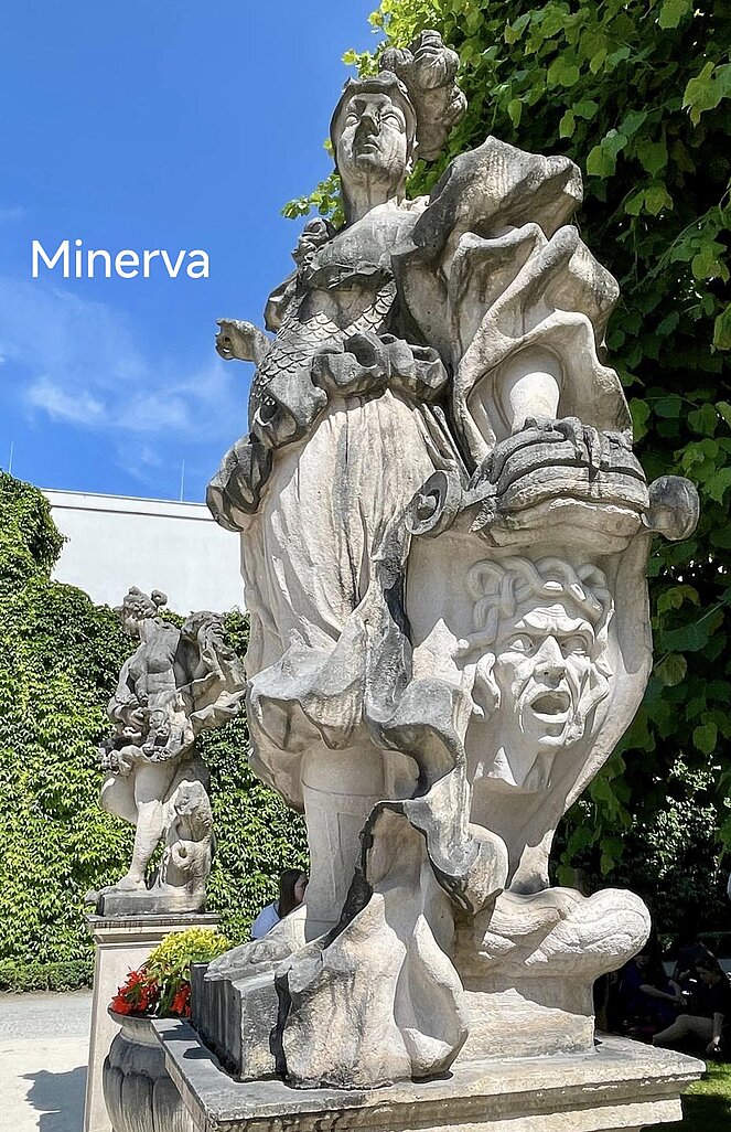 Der Vier-Elemente-Brunnen, nachdem wir einiges darüber erfahren hatten, wurde mit ganz anderen Augen betrachtet. Weiter gings zu den weiblichen und männlichen Götterfiguren. Dazu gab es kurze Geschichten zur Göttin Minerva, zur Göttin Venus und zum Gott Chronos.